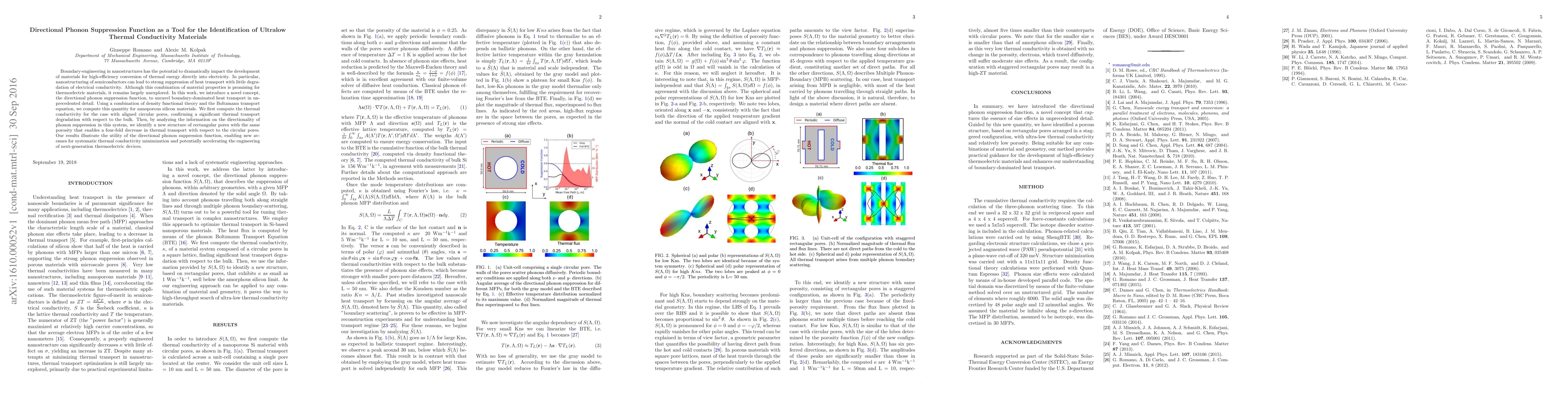 This paper introduces a directional phonon suppression function to analyze boundary-dominated heat transport in nanostructured materials, demonstrating its application in nanoporous silicon to achieve significant thermal conductivity reduction while maintaining electrical conductivity. This approach offers a new method for engineering ultralow thermal conductivity materials for thermoelectric applications.
