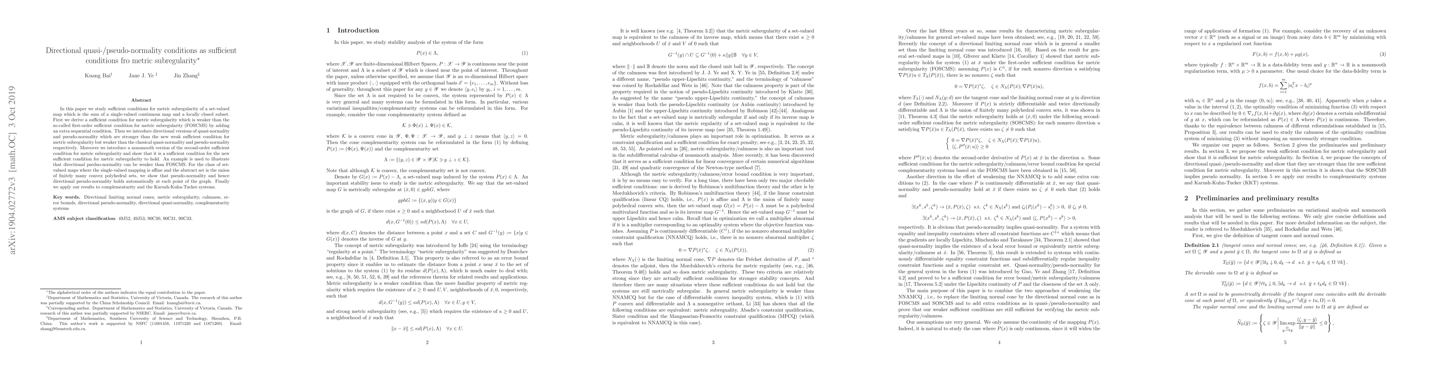 In this paper we study sufficient conditions for metric subregularity of a set-valued map which is the sum of a single-valued continuous map and a locally closed subset. First we derive a sufficient condition for metric subregularity which is weaker than the so-called first-order sufficient condition for metric subregularity (FOSCMS) by adding an extra sequential condition. Then we introduce a directional version of the quasi-normality and the pseudo-normality which is stronger than the new {weak} sufficient condition for metric subregularity but is weaker than the classical quasi-normality and pseudo-normality respectively. Moreover we introduce a nonsmooth version of the second-order sufficient condition for metric subregularity and show that it is a sufficient condition for the new sufficient condition for metric {sub}regularity to hold. An example is used to illustrate that the directional pseduo-normality can be weaker than FOSCMS. For the class of set-valued maps where the single-valued mapping is affine and the abstract set is the union of finitely many convex polyhedral sets, we show that the pseudo-normality and hence the directional pseudo-normality holds automatically at each point of the graph. Finally we apply our results to the complementarity and the Karush-Kuhn-Tucker systems.