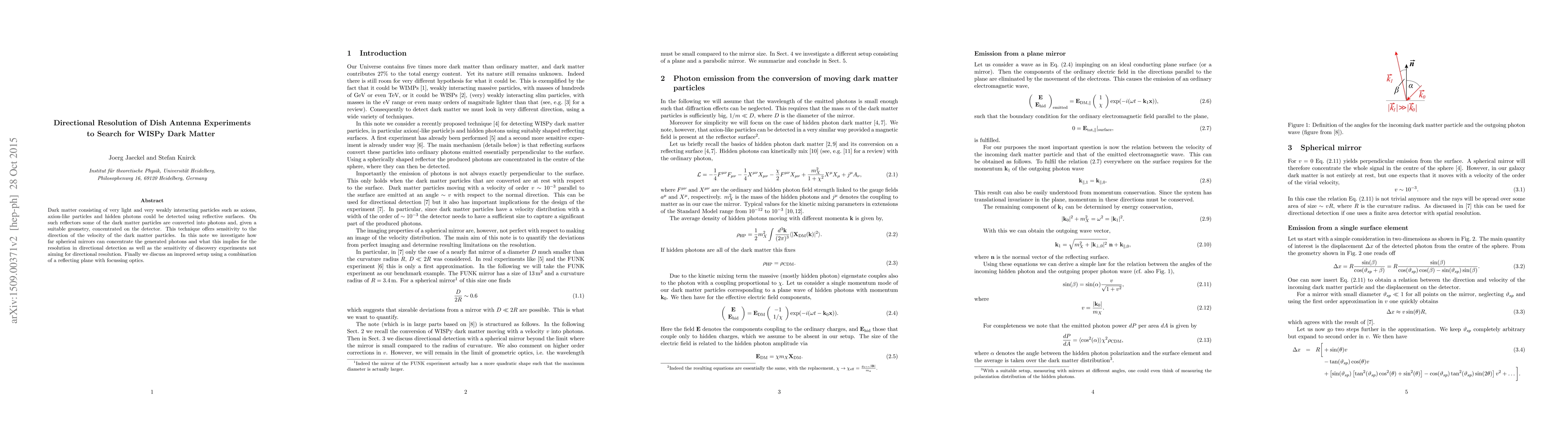 Dark matter consisting of very light and very weakly interacting particles such as axions, axion-like particles and hidden photons could be detected using reflective surfaces. On such reflectors some of the dark matter particles are converted into photons and, given a suitable geometry, concentrated on the detector. This technique offers sensitivity to the direction of the velocity of the dark matter particles. In this note we investigate how far spherical mirrors can concentrate the generated photons and what this implies for the resolution in directional detection as well as the sensitivity of discovery experiments not aiming for directional resolution. Finally we discuss an improved setup using a combination of a reflecting plane with focussing optics.