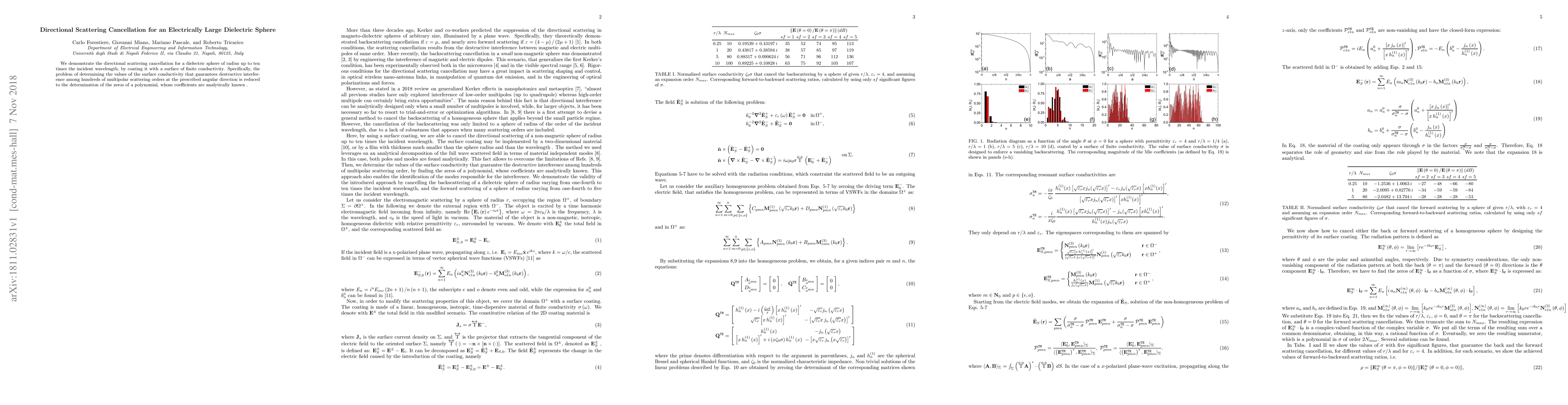 Researchers demonstrate directional scattering cancellation for a large dielectric sphere coated with finite conductivity, achieving destructive interference at prescribed angles.