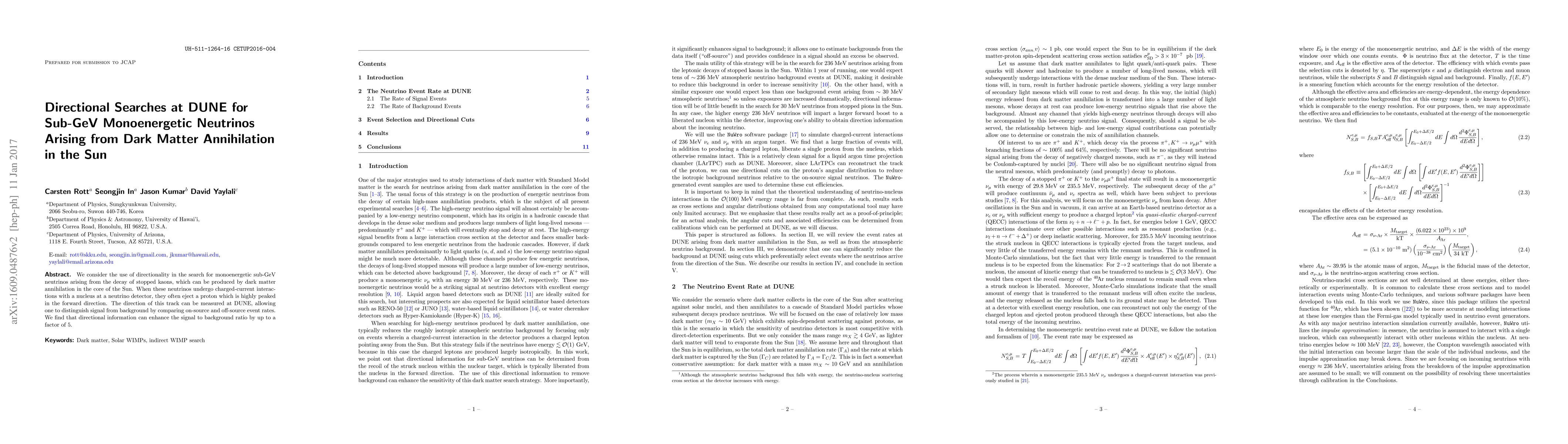 We consider the use of directionality in the search for monoenergetic sub-GeV neutrinos arising from the decay of stopped kaons, which can be produced by dark matter annihilation in the core of the Sun. When these neutrinos undergo charged-current interactions with a nucleus at a neutrino detector, they often eject a proton which is highly peaked in the forward direction. The direction of this track can be measured at DUNE, allowing one to distinguish signal from background by comparing on-source and off-source event rates. We find that directional information can enhance the signal to background ratio by up to a factor of 5.