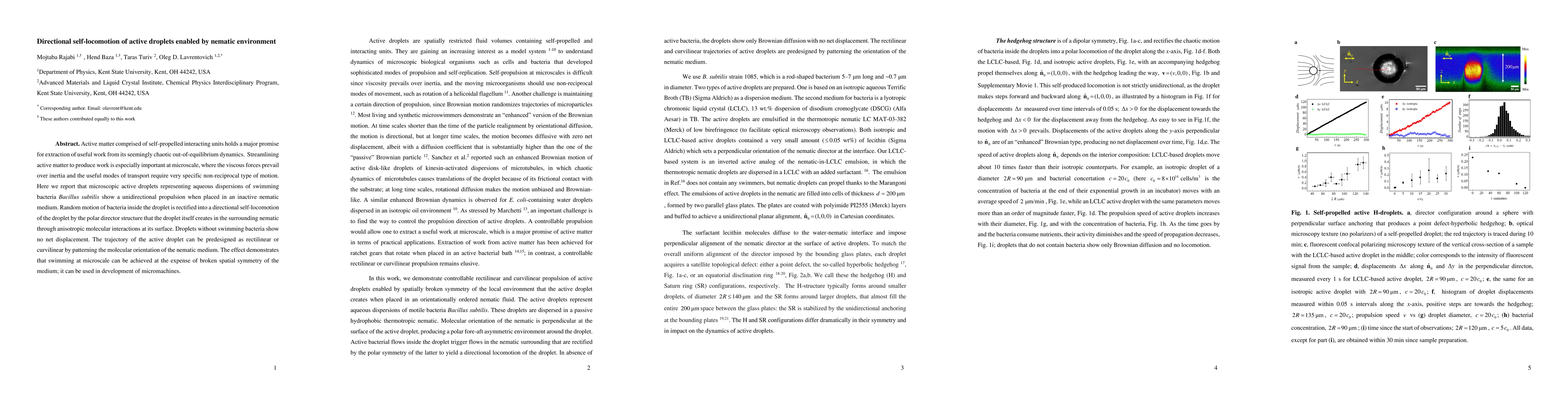 This research demonstrates that active droplets containing swimming bacteria can achieve directional self-locomotion in an inactive nematic medium through anisotropic interactions, converting random bacterial motion into a controlled trajectory. The medium's polar director structure enables the design of droplet paths, showing potential for microscale micromachine development.