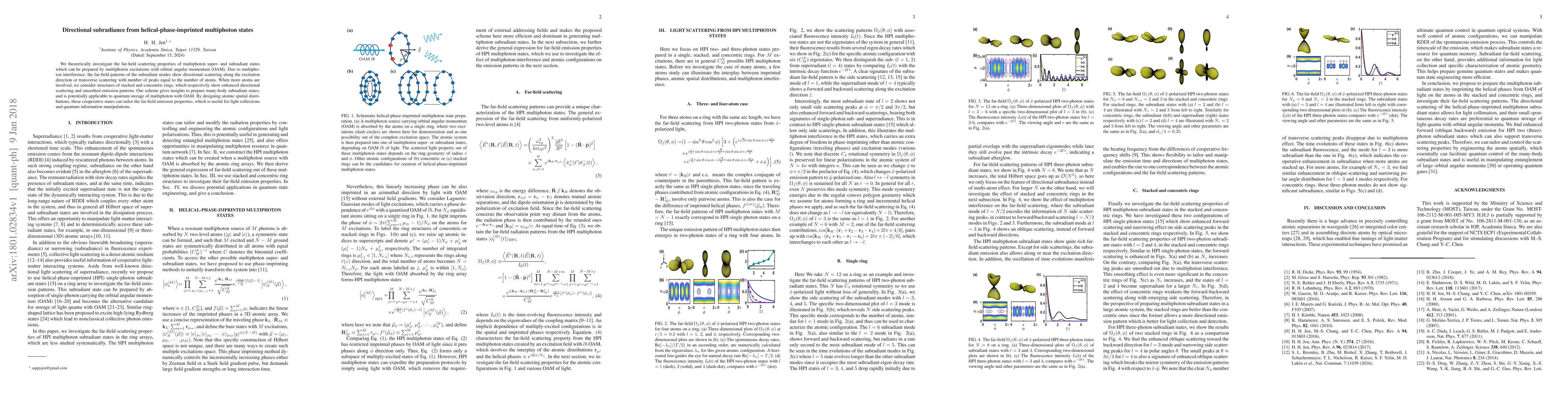 We theoretically investigate the far-field scattering properties of multiphoton super- and subradiant states which can be prepared by multiphoton excitations with orbital angular momentum (OAM).\ Due to multiphoton interference, the far-field patterns of the subradiant modes show directional scattering along the excitation direction or transverse scattering with number of peaks equal to the number of atoms.\ When more atoms are involved, we consider structures of stacked and concentric rings, which respectively show enhanced directional scattering and smoothed emission patterns.\ Our scheme gives insights to prepare many-body subradiant states, and is potentially applicable to quantum storage of multiphoton with OAM.\ By designing atomic spatial distributions, these cooperative states can tailor the far-field emission properties, which is useful for light collections and quantum information manipulations.
