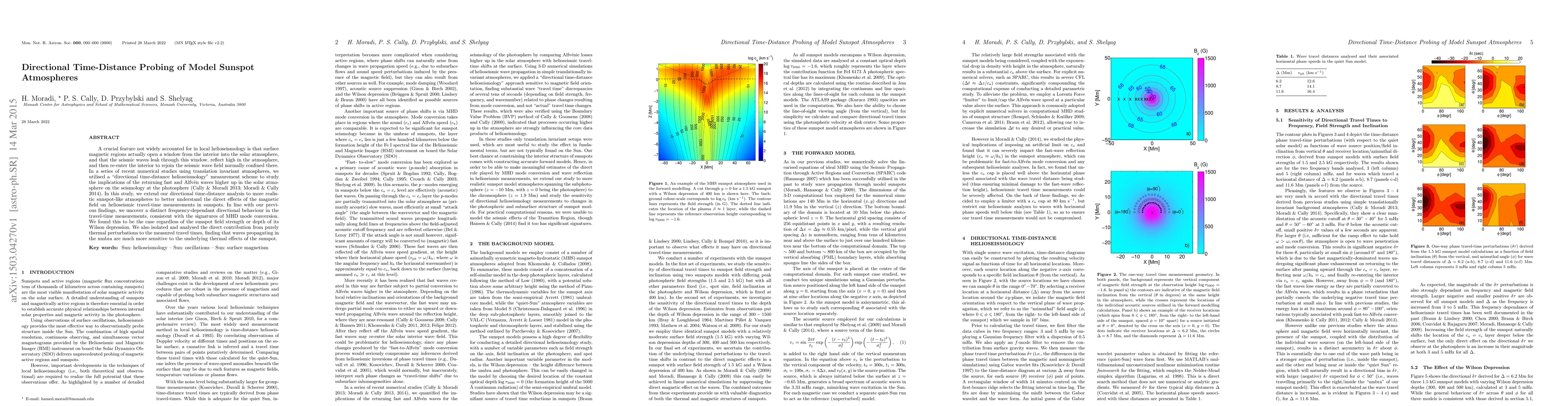 A crucial feature not widely accounted for in local helioseismology is that surface magnetic regions actually open a window from the interior into the solar atmosphere, and that the seismic waves leak through this window, reflect high in the atmosphere, and then re-enter the interior to rejoin the seismic wave field normally confined there. In a series of recent numerical studies using translation invariant atmospheres, we utilised a "directional time-distance helioseismology" measurement scheme to study the implications of the returning fast and Alfv\'en waves higher up in the solar atmosphere on the seismology at the photosphere (Cally & Moradi 2013; Moradi & Cally 2014). In this study, we extend our directional time-distance analysis to more realistic sunspot-like atmospheres to better understand the direct effects of the magnetic field on helioseismic travel-time measurements in sunspots. In line with our previous findings, we uncover a distinct frequency-dependant directional behaviour in the travel-time measurements, consistent with the signatures of MHD mode conversion. We found this to be the case regardless of the sunspot field strength or depth of its Wilson depression. We also isolated and analysed the direct contribution from purely thermal perturbations to the measured travel times, finding that waves propagating in the umbra are much more sensitive to the underlying thermal effects of the sunspot.