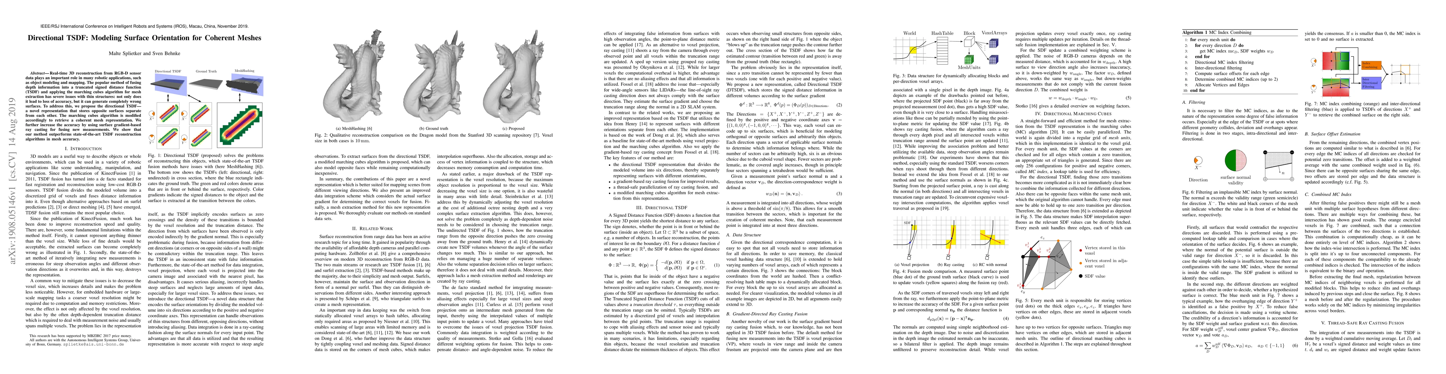 Real-time 3D reconstruction from RGB-D sensor data plays an important role in many robotic applications, such as object modeling and mapping. The popular method of fusing depth information into a truncated signed distance function (TSDF) and applying the marching cubes algorithm for mesh extraction has severe issues with thin structures: not only does it lead to loss of accuracy, but it can generate completely wrong surfaces. To address this, we propose the directional TSDF - a novel representation that stores opposite surfaces separate from each other. The marching cubes algorithm is modified accordingly to retrieve a coherent mesh representation. We further increase the accuracy by using surface gradient-based ray casting for fusing new measurements. We show that our method outperforms state-of-the-art TSDF reconstruction algorithms in mesh accuracy.