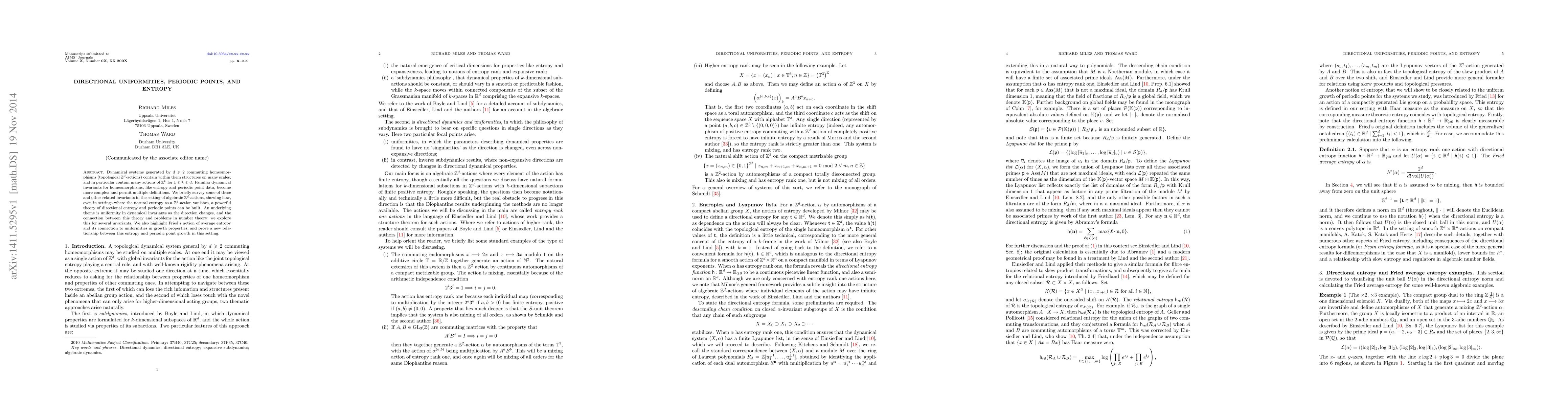 This paper explores dynamical systems from commuting homeomorphisms, revealing complex structures across scales. It introduces directional entropy and periodic point theories, even when natural entropy is zero, linking these to number theory problems and proving a new relationship between average entropy and periodic point growth.