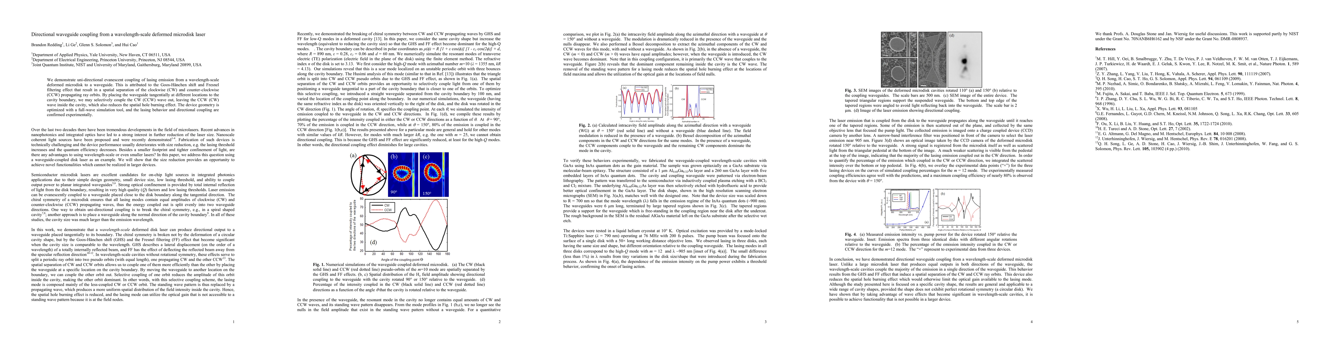 This paper demonstrates directional waveguide coupling from a deformed microdisk laser, utilizing the Goos-Hänchen shift and Fresnel filtering to achieve uni-directional coupling. The waveguide placement allows selective coupling of either clockwise or counter-clockwise lasing emissions, reducing spatial hole burning effects.