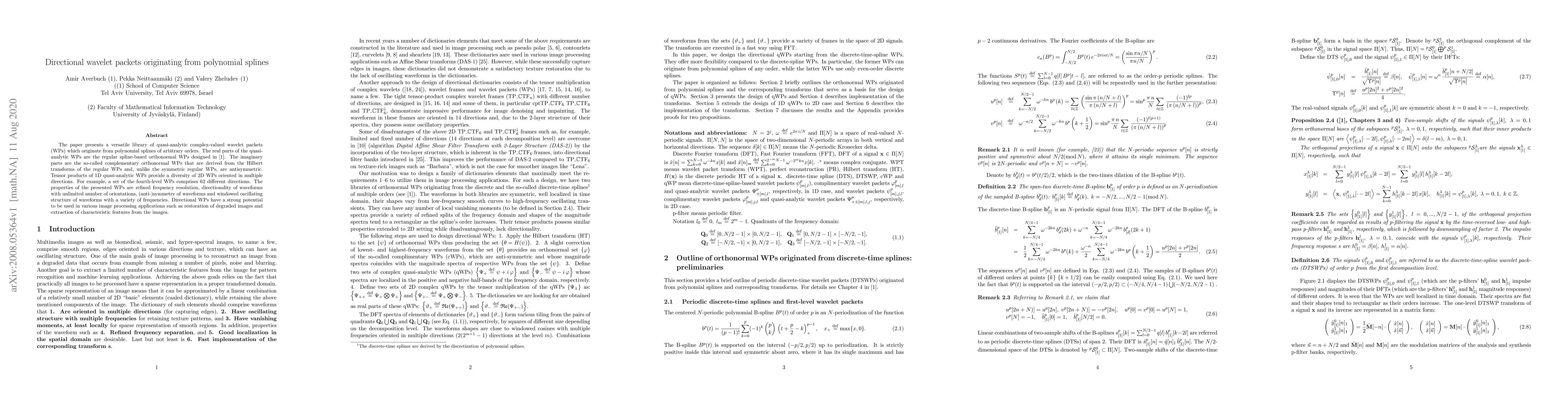 A new library of complex-valued wavelet packets originating from polynomial splines offers high frequency resolution, directionality, and symmetry, with potential applications in image processing such as restoration and feature extraction.