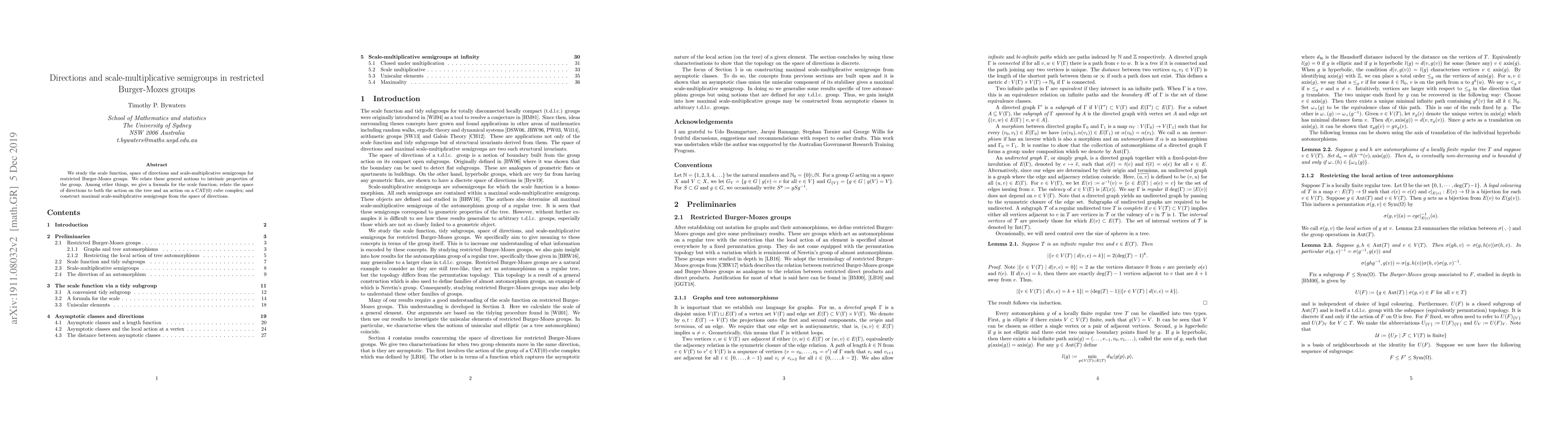 We study the scale function, space of directions and scale-multiplicative semigroups for restricted Burger-Mozes groups. We relate these general notions to intrinsic properties of the group. Among other things, we give a formula for the scale function; relate the space of directions to both the action on the tree and an action on a $\operatorname{CAT}(0)$ cube complex; and construct maximal scale-multiplicative semigroups from the space of directions.