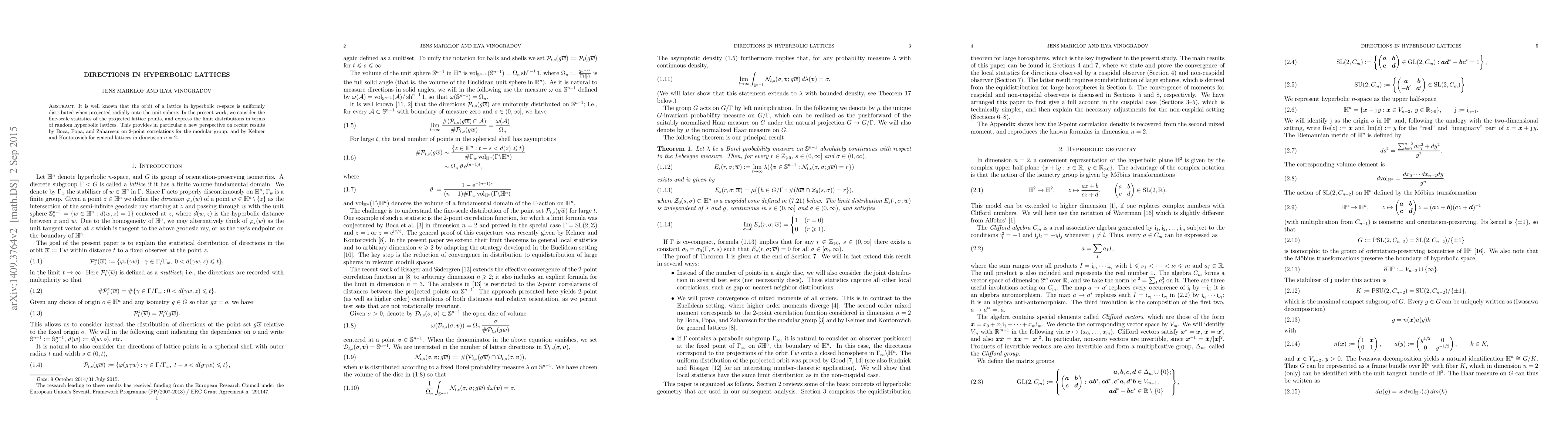This paper explores the distribution of projected lattice points in hyperbolic space, providing new insights into recent findings on 2-point correlations for lattices. It expresses limit distributions as random hyperbolic lattices, offering a fresh perspective.