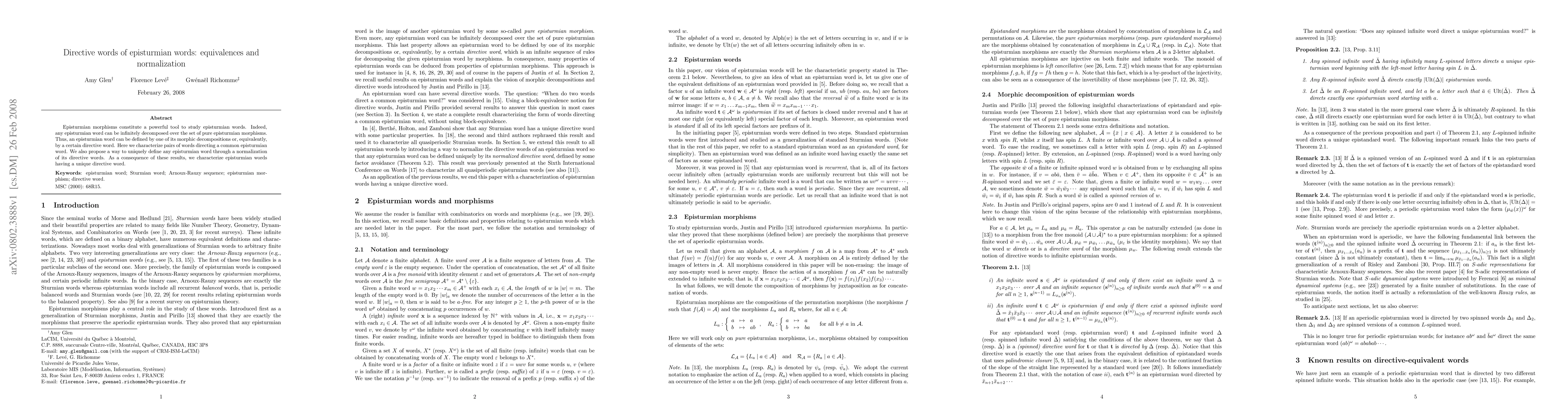 The work extends previous research on Sturmian words by providing a comprehensive analysis of directive words for episturmian words, including a unique normalization method, which was not available before.