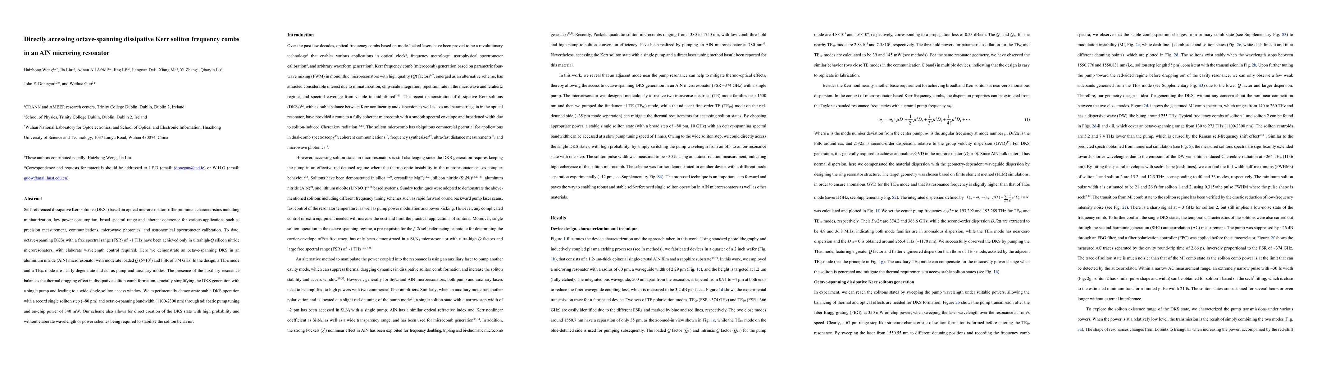 This paper demonstrates the generation of octave-spanning dissipative Kerr soliton frequency combs in an AlN microring resonator, achieving stable operation with a record single soliton step of ~80 pm and requiring only on-chip power of 340 mW, simplifying DKS formation through balanced thermal dragging effects.