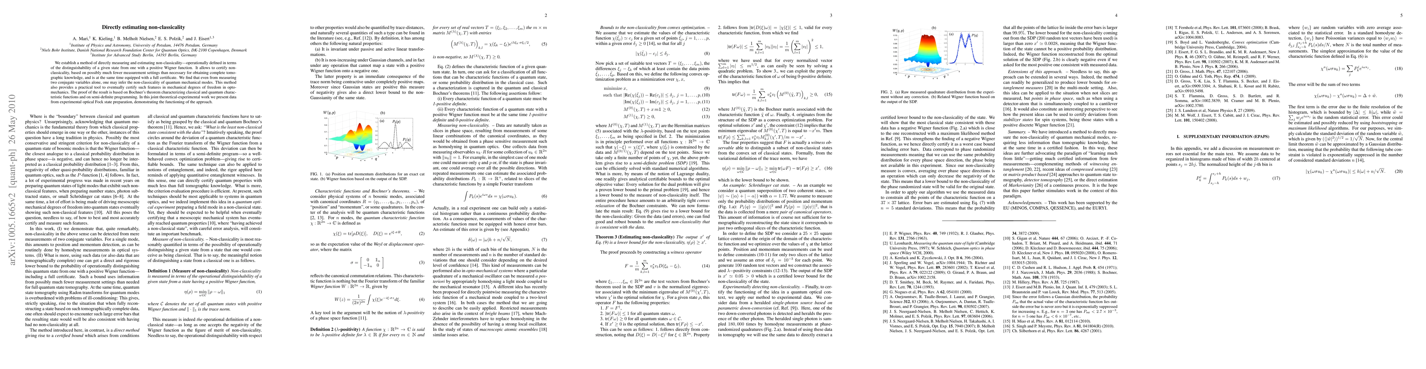 We establish a method of directly measuring and estimating non-classicality - operationally defined in terms of the distinguishability of a given state from one with a positive Wigner function. It allows to certify non-classicality, based on possibly much fewer measurement settings than necessary for obtaining complete tomographic knowledge, and is at the same time equipped with a full certificate. We find that even from measuring two conjugate variables alone, one may infer the non-classicality of quantum mechanical modes. This method also provides a practical tool to eventually certify such features in mechanical degrees of freedom in opto-mechanics. The proof of the result is based on Bochner's theorem characterizing classical and quantum characteristic functions and on semi-definite programming. In this joint theoretical-experimental work we present data from experimental optical Fock state preparation, demonstrating the functioning of the approach.