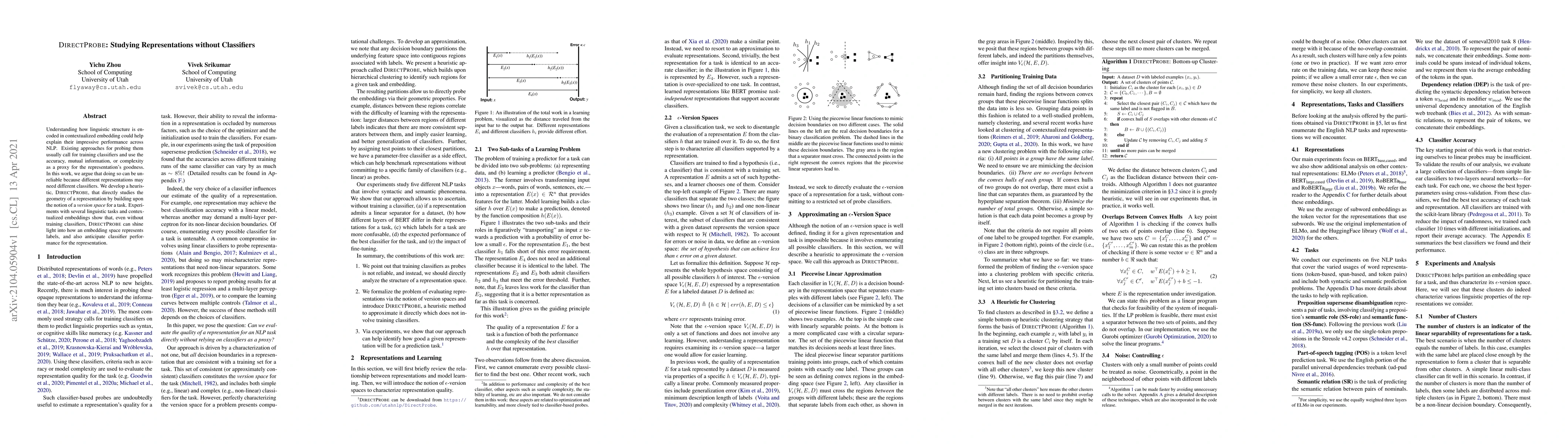 Researchers developed a new method called DirectProbe to study how linguistic structures are encoded in contextualized embeddings without needing trained classifiers. The approach can reveal how an embedding space represents labels and even predict classifier performance.