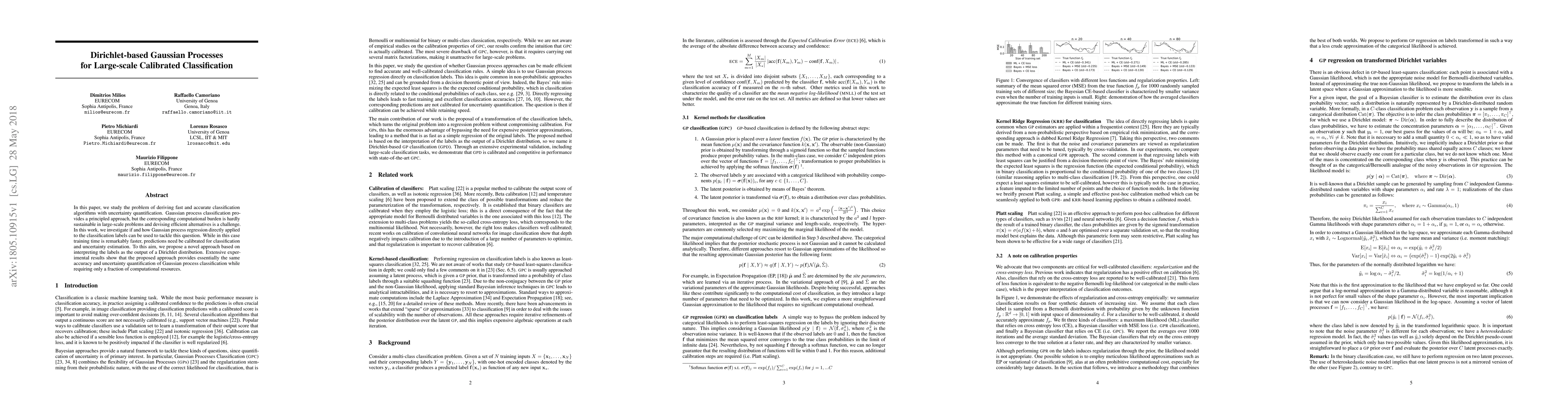 This paper proposes a novel method using Dirichlet-based Gaussian processes to achieve fast and accurate large-scale classification with uncertainty quantification. It leverages Gaussian process regression on classification labels interpreted through a Dirichlet distribution, significantly reducing computational costs while maintaining accuracy.