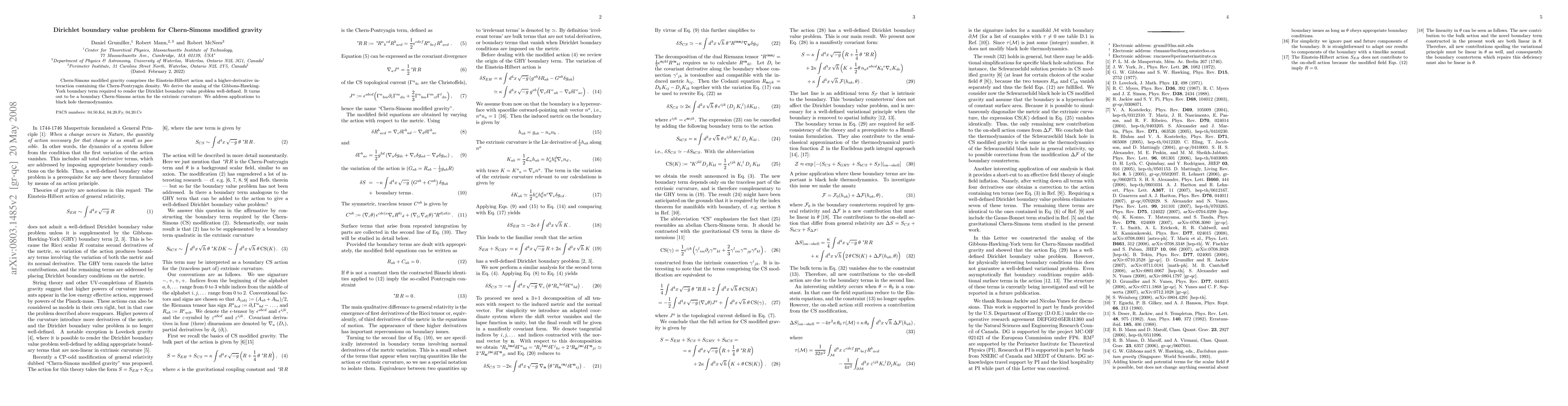 The paper derives the boundary term necessary to solve the Dirichlet boundary value problem for Chern-Simons modified gravity, revealing it to be a boundary Chern-Simons action, and discusses its implications for black hole thermodynamics.