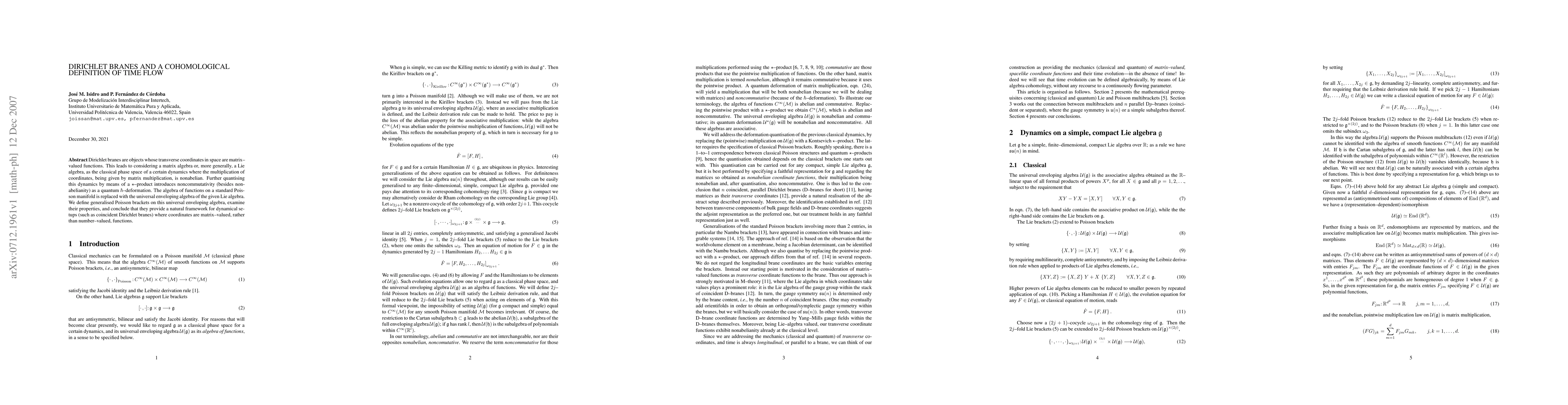 Dirichlet branes are objects whose transverse coordinates in space are matrix-valued functions. This leads to considering a matrix algebra or, more generally, a Lie algebra, as the classical phase space of a certain dynamics where the multiplication of coordinates, being given by matrix multiplication, is nonabelian. Further quantising this dynamics by means of a star-product introduces noncommutativity (besides nonabelianity) as a quantum h-deformation. The algebra of functions on a standard Poisson manifold is replaced with the universal enveloping algebra of the given Lie algebra. We define generalised Poisson brackets on this universal enveloping algebra, examine their properties, and conclude that they provide a natural framework for dynamical setups (such as coincident Dirichlet branes) where coordinates are matrix-valued, rather than number-valued, functions.