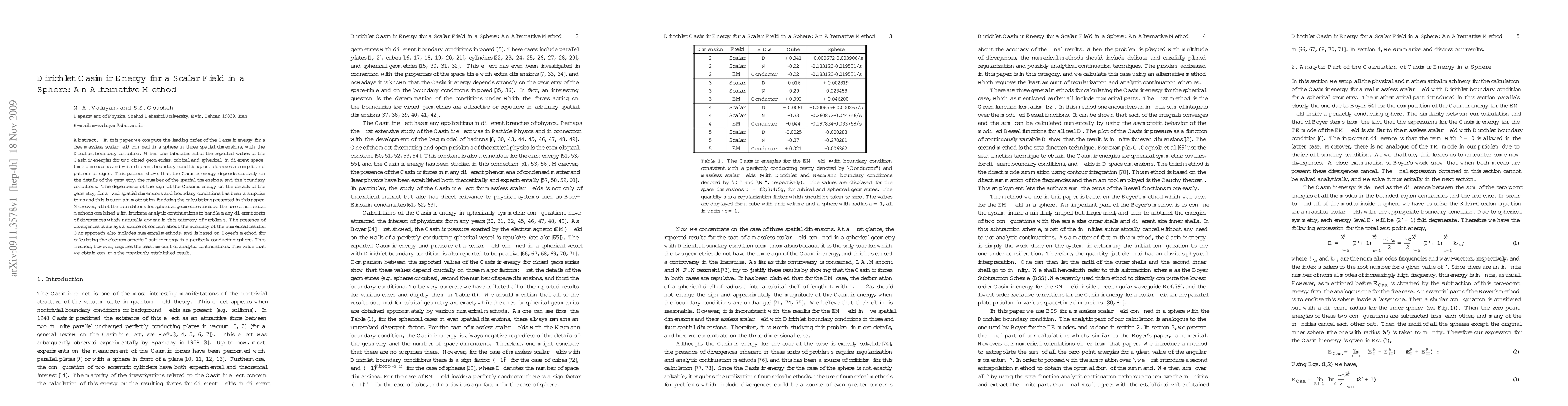 This paper presents an alternative method to compute the leading order of the Dirichlet Casimir energy for a free massless scalar field in a three-dimensional sphere, emphasizing the surprising dependence of the sign on geometry details. The method uses Boyer's approach, minimizing analytic continuations, and confirms previously established results.