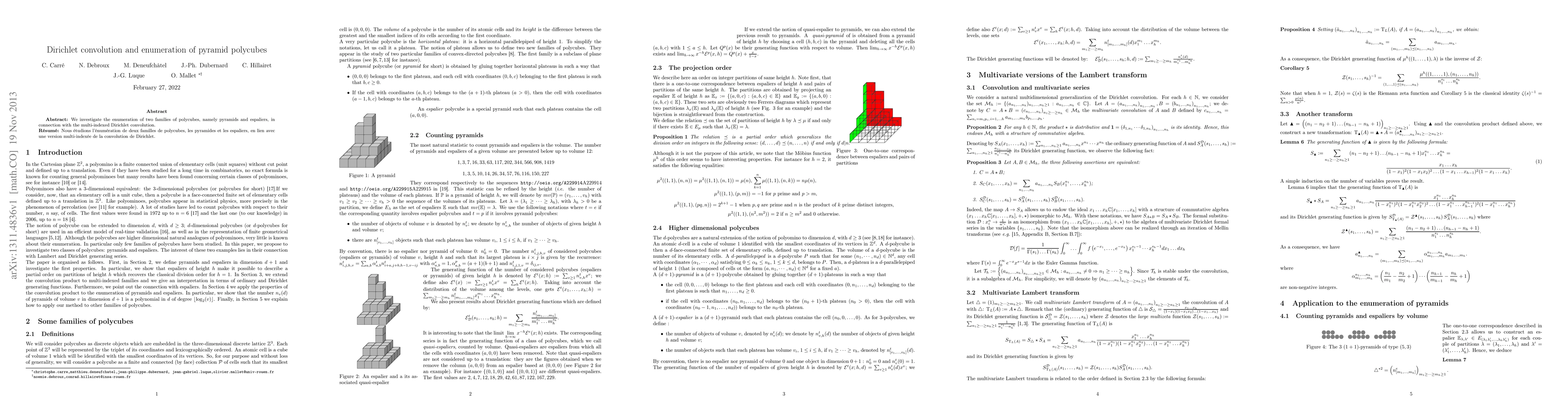 We investigate the enumeration of two families of polycubes, namely pyramids and espaliers, in connection with the multi-indexed Dirichlet convolution
