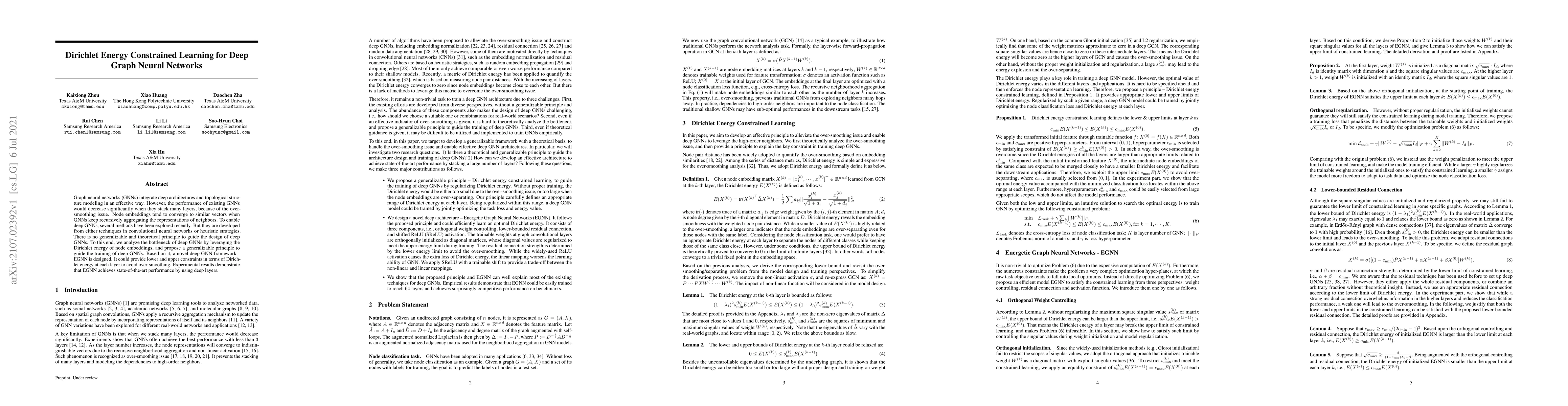 This paper proposes a novel deep graph neural network framework, EGNN, which leverages Dirichlet energy constraints to address the over-smoothing issue in deep GNNs. EGNN provides theoretical guidance and practical constraints to maintain node embedding diversity, achieving state-of-the-art performance with deep layers.