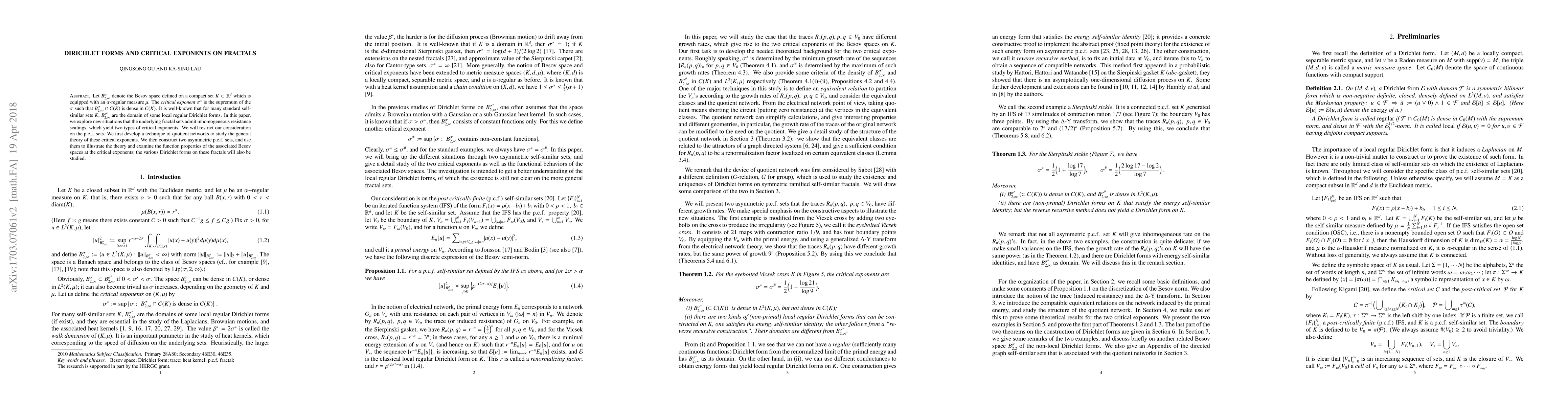Let $B^{\sigma}_{2, \infty}$ denote the Besov space defined on a compact set $K \subset {\Bbb R}^d$ which is equipped with an $\alpha$-regular measure $\mu$. The {\it critical exponent} $\sigma^*$ is the supremum of the $\sigma$ such that $B^{\sigma}_{2, \infty} \cap C(K)$ is dense in $C(K)$. It is well-known that for many standard self-similar sets $K$, $B^{\sigma^*}_{2, \infty}$ are the domain of some local regular Dirichlet forms. In this paper, we explore new situations that the underlying fractal sets admit inhomogeneous resistance scalings, which yield two types of critical exponents. We will restrict our consideration on the p.c.f. sets. We first develop a technique of quotient networks to study the general theory of these critical exponents. We then construct two asymmetric p.c.f. sets, and use them to illustrate the theory and examine the function properties of the associated Besov spaces at the critical exponents; the various Dirichlet forms on these fractals will also be studied.