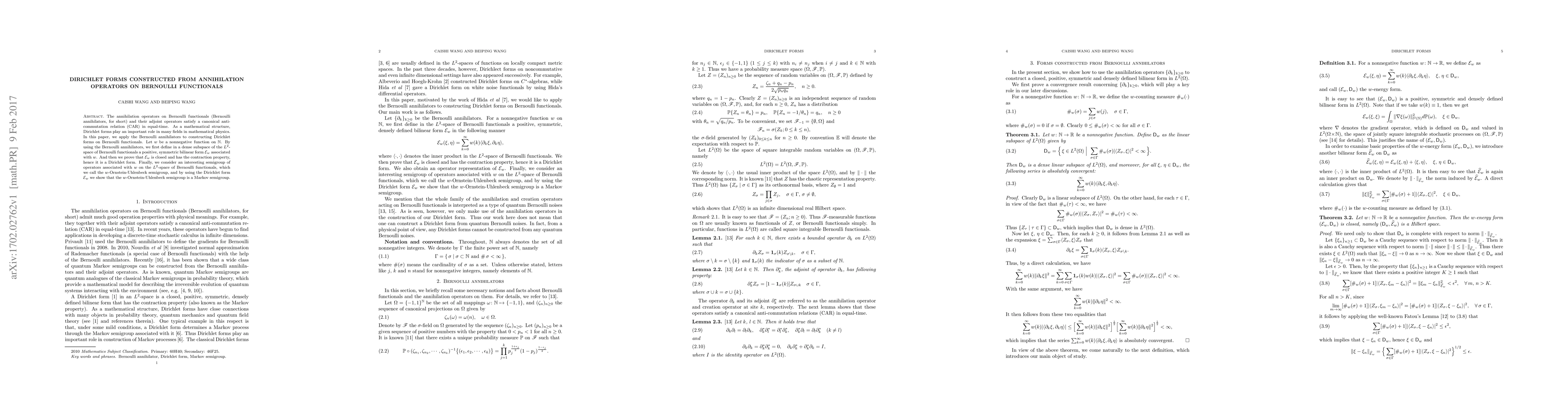 This paper constructs Dirichlet forms using Bernoulli annihilators, which satisfy a canonical anti-commutation relation. The authors define a positive, symmetric bilinear form $\mathcal{E}_w$ in $L^2$-space of Bernoulli functionals, proving it to be a closed Dirichlet form and demonstrating that it supports a Markov semigroup known as the $w$-Ornstein-Uhlenbeck semigroup.