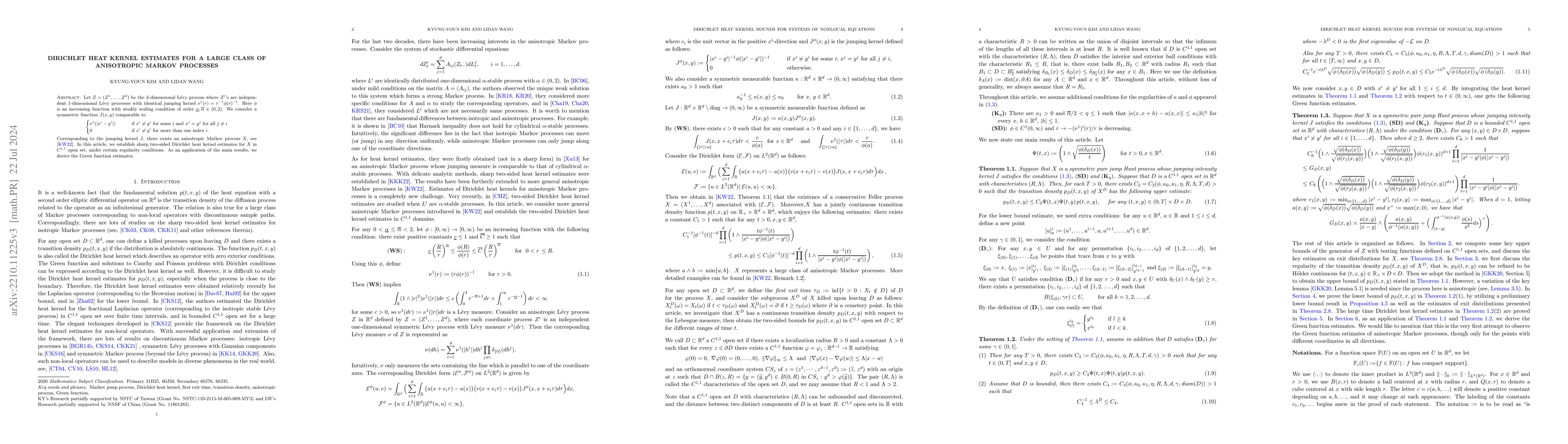This paper establishes sharp two-sided Dirichlet heat kernel estimates for a broad class of anisotropic Markov processes derived from d-dimensional Lévy processes with identical jumping kernels. The estimates are obtained under specified regularity conditions, with an application yielding Green function estimates.