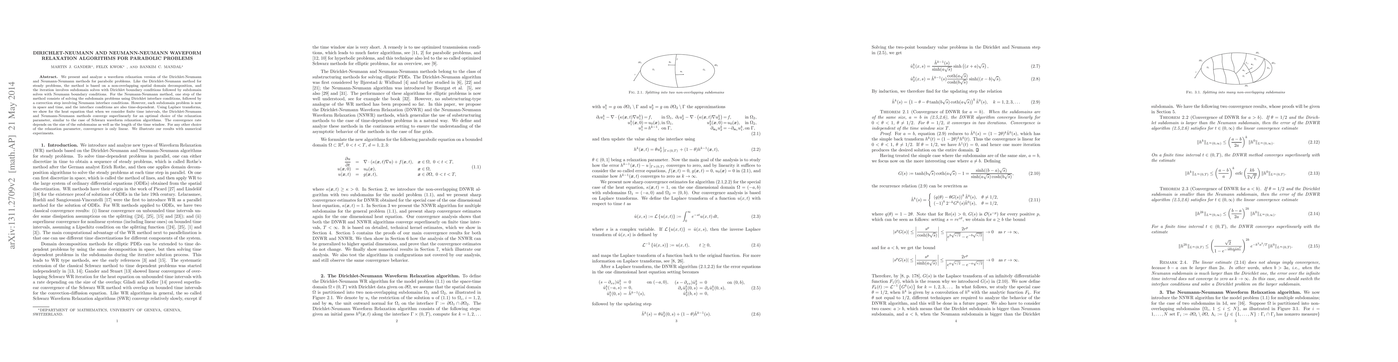 This paper proposes waveform relaxation versions of Dirichlet-Neumann and Neumann-Neumann methods for solving parabolic problems using spatial domain decomposition. It demonstrates superlinear convergence for optimal relaxation parameters and linear convergence for others, validated through numerical experiments.