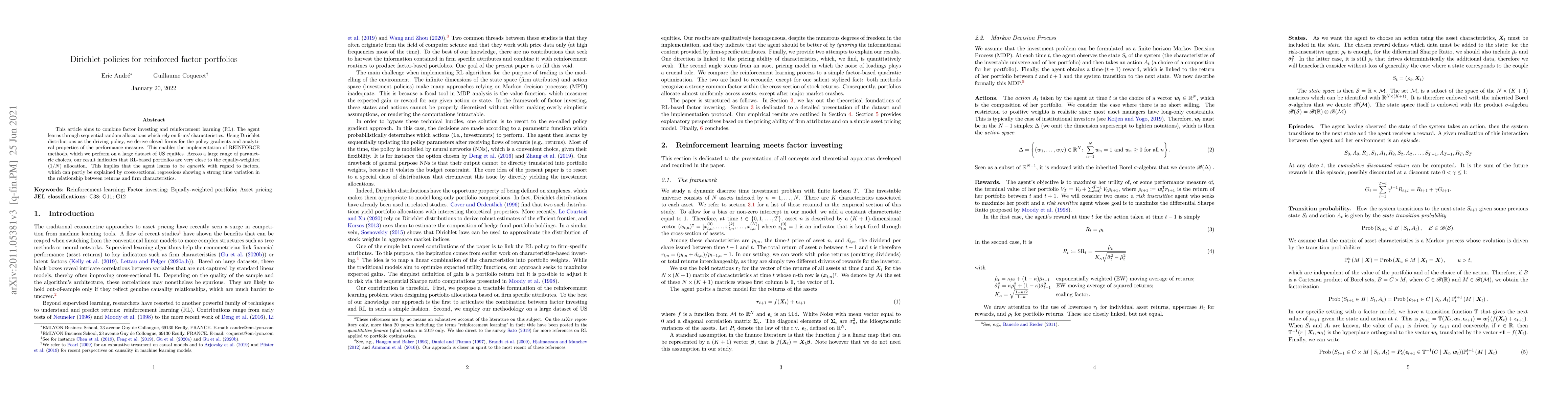 Researchers used reinforcement learning to optimize factor portfolios in US equities, finding that agent-learning portfolios closely resemble equally-weighted allocations. This suggests the agent learns to be agnostic to factors, likely due to time-varying relationships between returns and firm characteristics.