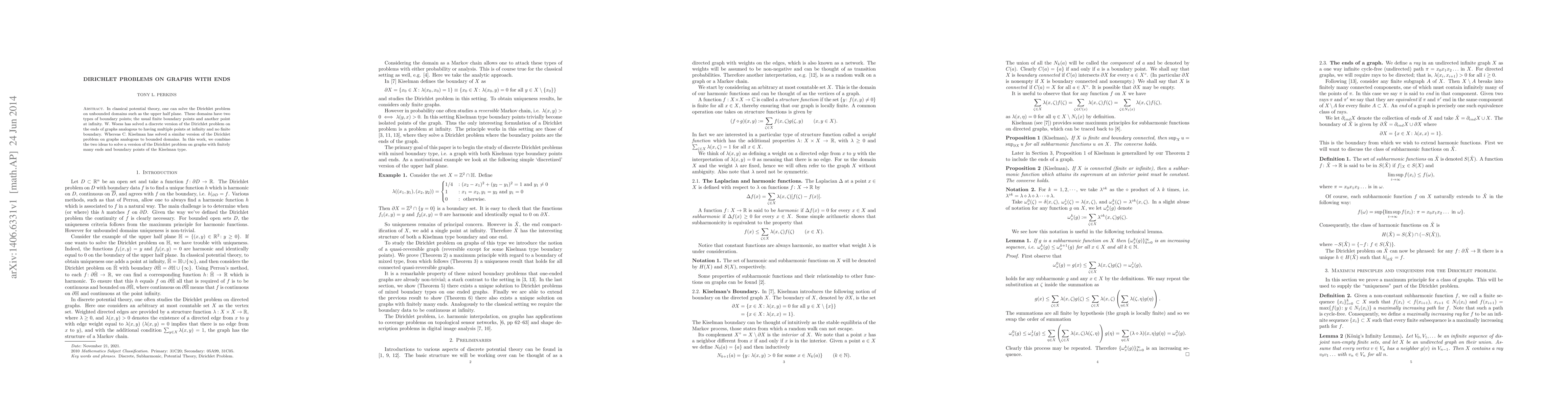 In classical potential theory, one can solve the Dirichlet problem on unbounded domains such as the upper half plane. These domains have two types of boundary points; the usual finite boundary points and another point at infinity. W. Woess has solved a discrete version of the Dirichlet problem on the ends of graphs analogous to having multiple points at infinity and no finite boundary. Whereas C. Kiselman has solved a similar version of the Dirichlet problem on graphs analogous to bounded domains. In this work, we combine the two ideas to solve a version of the Dirichlet problem on graphs with finitely many ends and boundary points of the Kiselman type.
