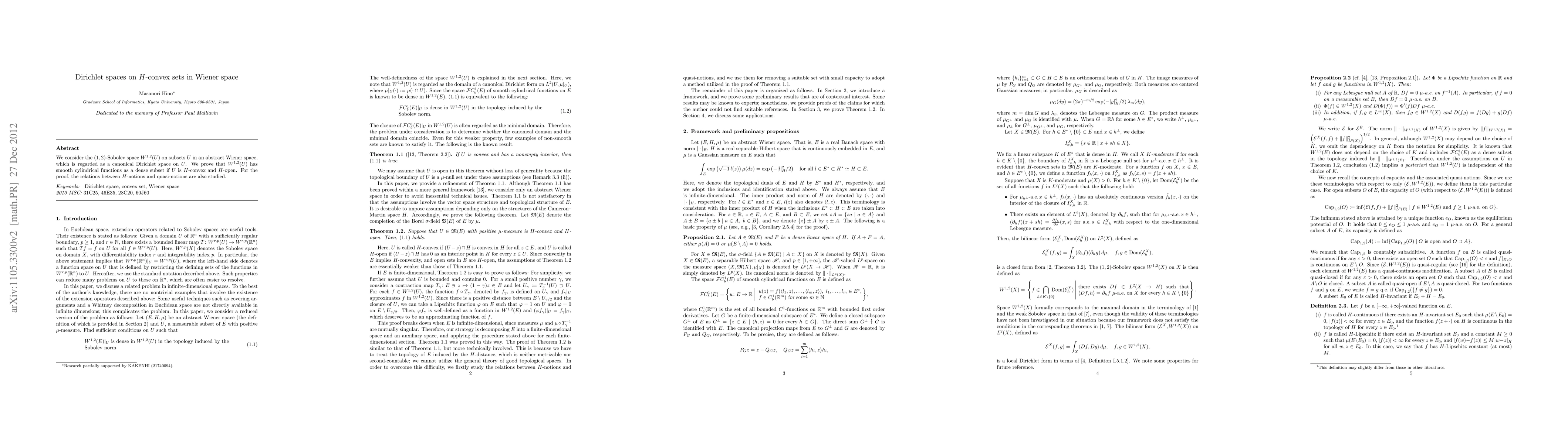 Researchers prove that a specific type of Sobolev space has dense cylindrical functions when defined on H-convex sets in Wiener space, with implications for understanding smooth functions in this context.