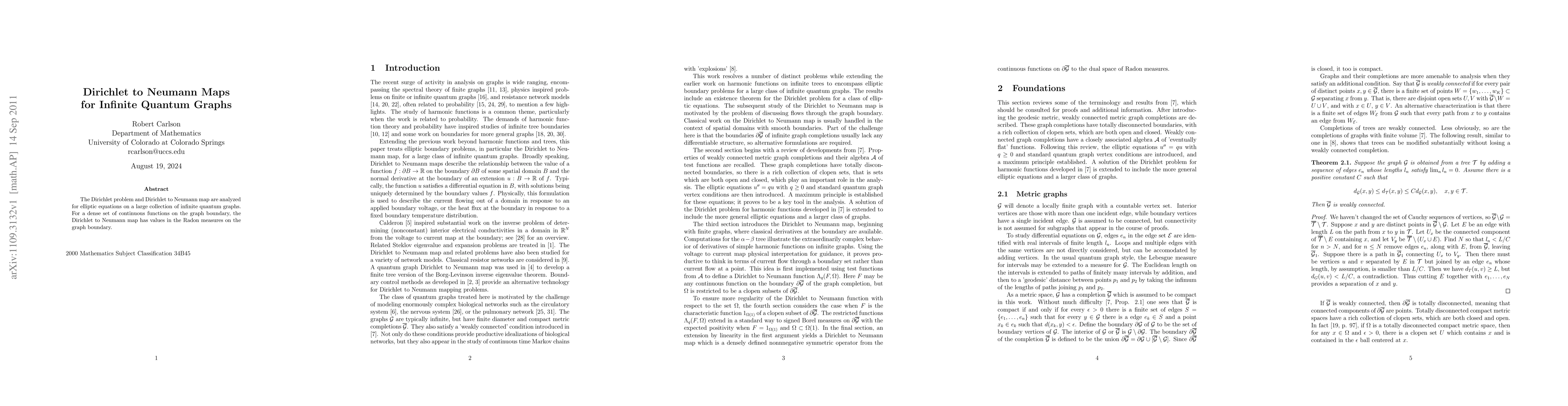 The paper explores the Dirichlet problem and the associated Dirichlet to Neumann map for elliptic equations on infinite quantum graphs, demonstrating that for a dense set of boundary functions, the map yields values in Radon measures on the graph boundary.