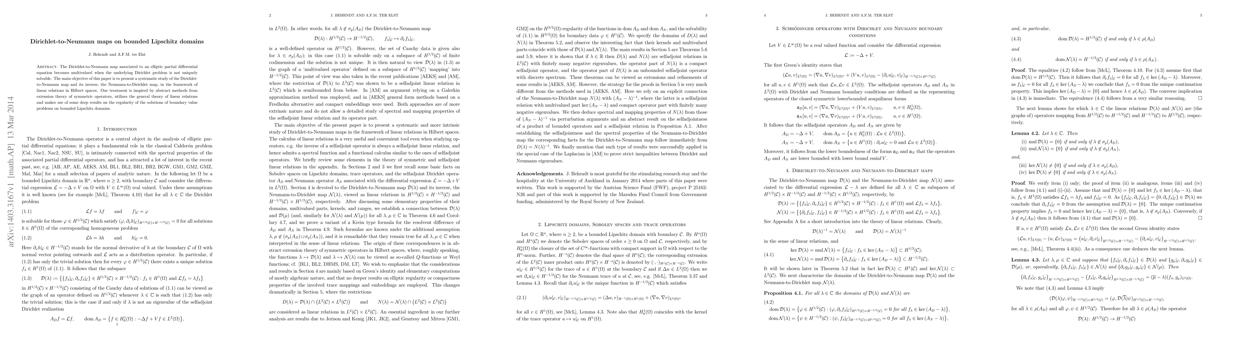 This paper systematically studies the Dirichlet-to-Neumann map and its inverse in the context of linear relations in Hilbert spaces, leveraging abstract methods from operator theory and deep results on boundary value problems in bounded Lipschitz domains.