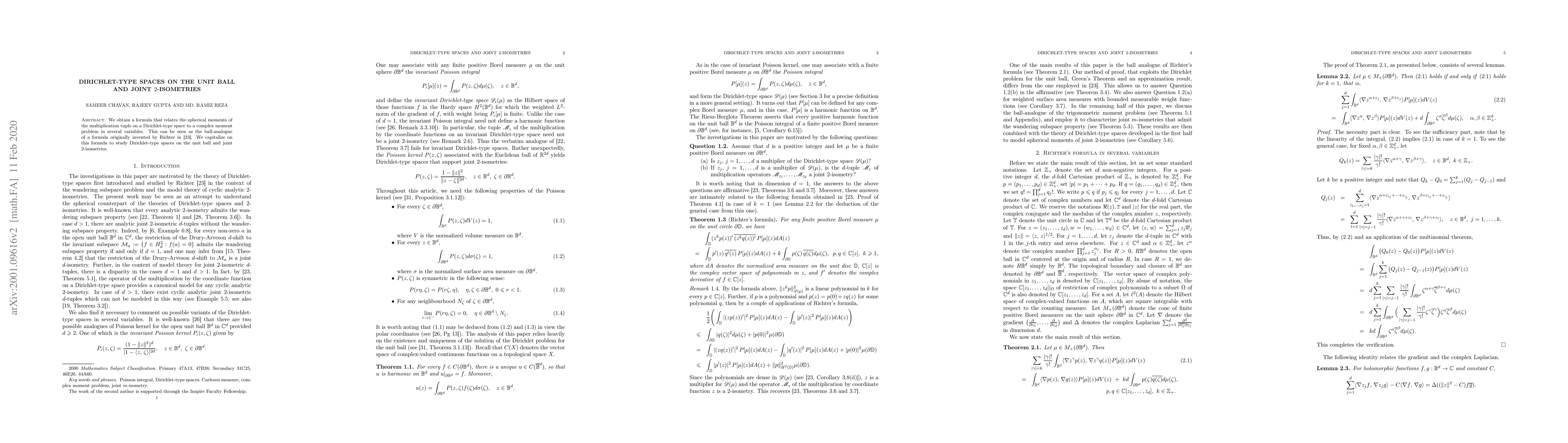 We obtain a formula that relates the spherical moments of the multiplication tuple on a Dirichlet-type space to a complex moment problem in several variables. This can be seen as the ball-analogue of a formula originally invented by Richter. We capitalize on this formula to study Dirichlet-type spaces on the unit ball and joint $2$-isometries.