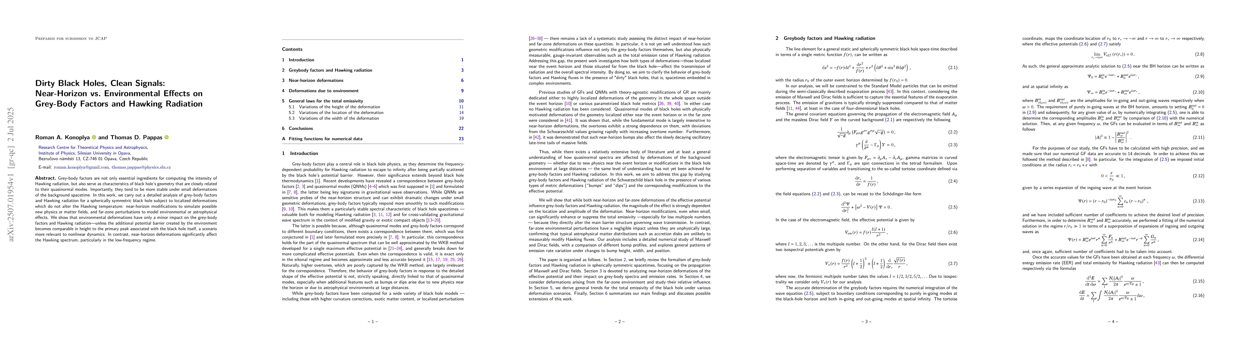 Grey-body factors are not only essential ingredients for computing the intensity of Hawking radiation, but also serve as characteristics of black hole's geometry that are closely related to their quasinormal modes. Importantly, they tend to be more stable under small deformations of the background spacetime. In this work, we carry out a detailed analysis of grey-body factors and Hawking radiation for a spherically symmetric black hole subject to localized deformations which do not alter the Hawking temperature: near-horizon modifications to simulate possible new physics or matter fields, and far-zone perturbations to model environmental or astrophysical effects. We show that environmental deformations have only a minor impact on the grey-body factors and Hawking radiation--unless the additional potential barrier created by the environment becomes comparable in height to the primary peak associated with the black hole itself, a scenario more relevant to nonlinear dynamics. In contrast, near-horizon deformations significantly affect the Hawking spectrum, particularly in the low-frequency regime.