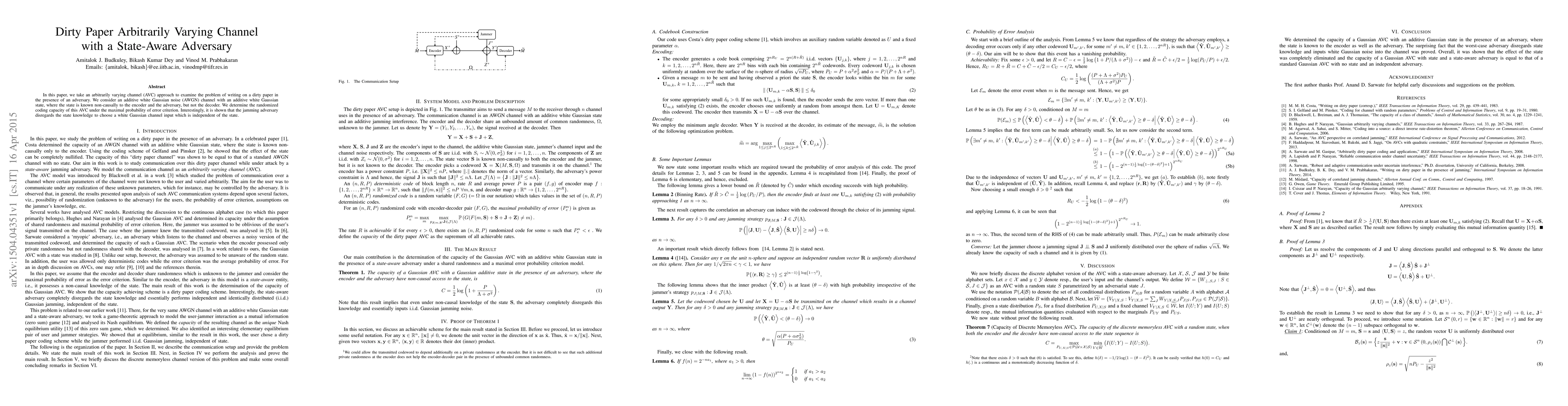 In this paper, we take an arbitrarily varying channel (AVC) approach to examine the problem of writing on a dirty paper in the presence of an adversary. We consider an additive white Gaussian noise (AWGN) channel with an additive white Gaussian state, where the state is known non-causally to the encoder and the adversary, but not the decoder. We determine the randomized coding capacity of this AVC under the maximal probability of error criterion. Interestingly, it is shown that the jamming adversary disregards the state knowledge to choose a white Gaussian channel input which is independent of the state.
