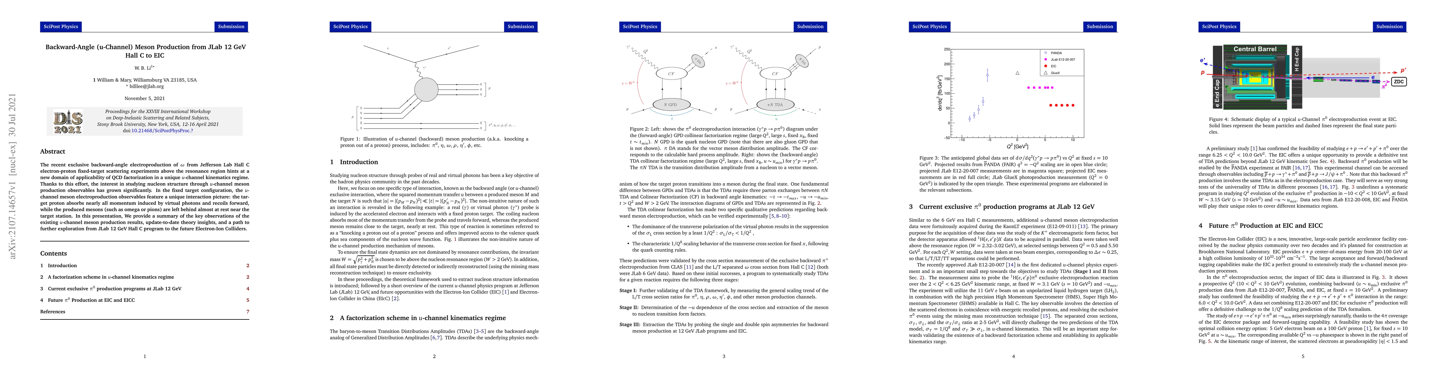 The recent exclusive backward-angle electroproduction of omega from Jefferson Lab Hall C electron-proton fixed-target scattering experiments above the resonance region hints at a new domain of applicability of QCD factorization in a unique u-channel kinematics regime. Thanks to this effort, the interest in studying nucleon structure through u-channel meson production observables has grown significantly. In the fixed target configuration, the u-channel meson electroproduction observables feature a unique interaction picture: the target proton absorbs nearly all momentum induced by virtual photons and recoils forward, while the produced mesons (such as omega or pions) are left behind almost at rest near the target station. In this presentation, We provide a summary of the key observations of the existing u-channel meson production results, update-to-date theory insights, and a path to further exploration from JLab 12 GeV Hall C program to the future Electron-Ion Colliders.