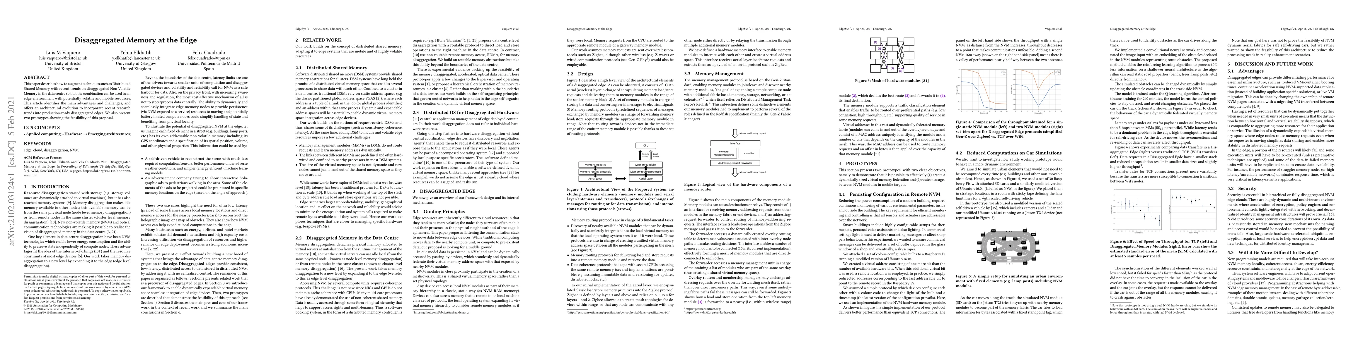 This paper describes how to augment techniques such as Distributed Shared Memory with recent trends on disaggregated Non Volatile Memory in the data centre so that the combination can be used in an edge environment with potentially volatile and mobile resources. This article identifies the main advantages and challenges, and offers an architectural evolution to incorporate recent research trends into production-ready disaggregated edges. We also present two prototypes showing the feasibility of this proposal.