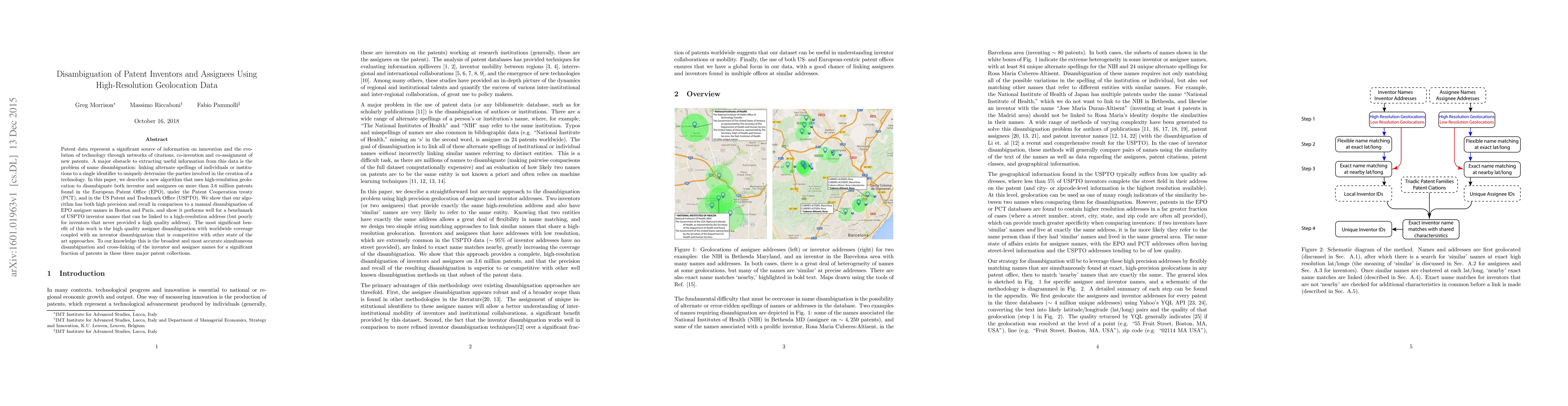 This paper presents an algorithm leveraging high-resolution geolocation data to disambiguate patent inventors and assignees across 3.6 million patents from the EPO, PCT, and USPTO. The method achieves high precision and recall, particularly for assignees, and offers a competitive approach for inventor disambiguation, marking a significant advancement in patent data analysis.