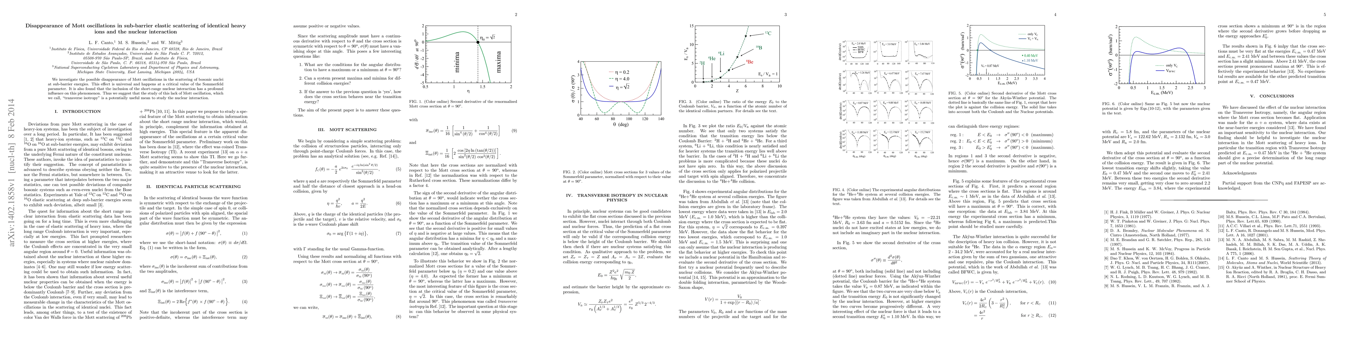 We investigate the possible disappearance of Mott oscillations in the scattering of bosonic nuclei at sub-barrier energies. This effect is universal and happens at a critical value of the Sommerfeld parameter. It is also found that the inclusion of the short-range nuclear interaction has a profound influence on this phenomenon. Thus we suggest that the study of this lack of Mott oscillation, which we call, ``transverse isotropy" is a potentially useful mean to study the nuclear interaction.
