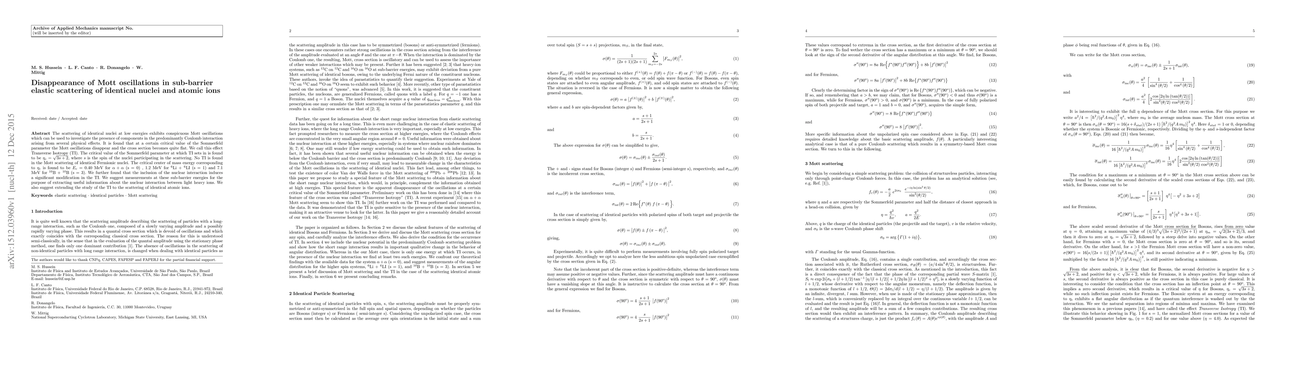 The disappearance of Mott oscillations in sub-barrier elastic scattering of identical nuclei and atomic ions is studied, revealing a critical value of the Sommerfeld parameter at which this effect occurs, known as Transverse Isotropy (TI).