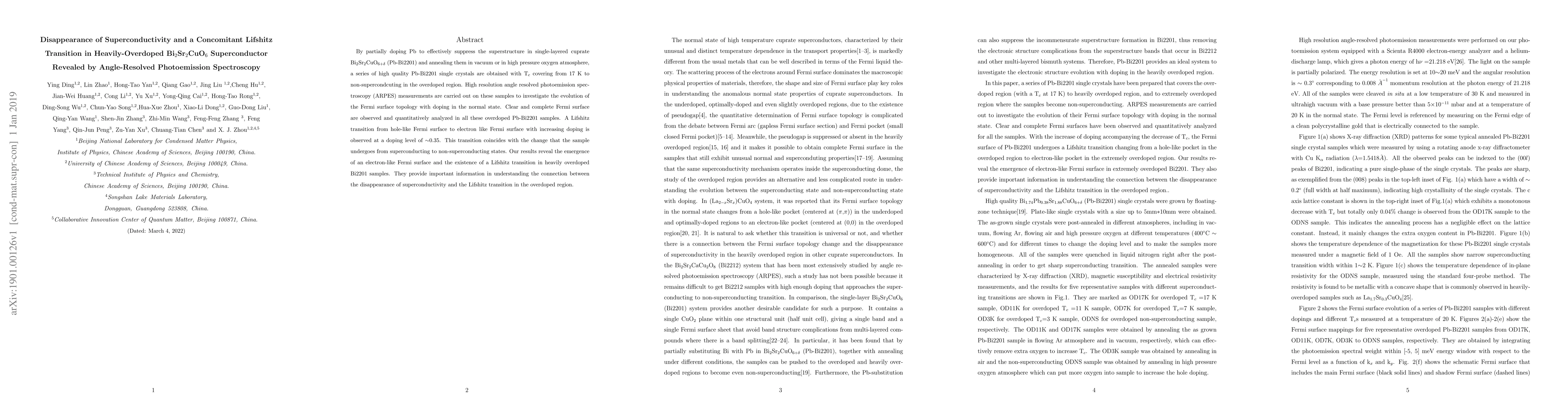 By partially doping Pb to effectively suppress the superstructure in single-layered cuprate Bi2Sr2CuO6+{\delta}(Pb-Bi2201) and annealing them in vacuum or in high pressure oxygen atmosphere, a series of high quality Pb-Bi2201 single crystals are obtained with Tc covering from 17 K to non-supercondcuting in the overdoped region. High resolution angle resolved photoemission spectroscopy (ARPES) measurements are carried out on these samples to investigate the evolution of the Fermi surface topology with doping in the normal state. Clear and complete Fermi surface are observed and quantitatively analyzed in all these overdoped Pb-Bi2201 samples. A Lifshitz transition from hole-like Fermi surface to electron like Fermi surface with increasing doping is observed at a doping level of ~0.35. This transition coincides with the change that the sample undergoes from superconducting to non-superconducting states. Our results reveal the emergence of an electron-like Fermi surface and the existence of a Lifshitz transition in heavily overdoped Bi2201 samples. They provide important information in understanding the connection between the disappearance of superconductivity and the Lifshitz transition in the overdoped region.