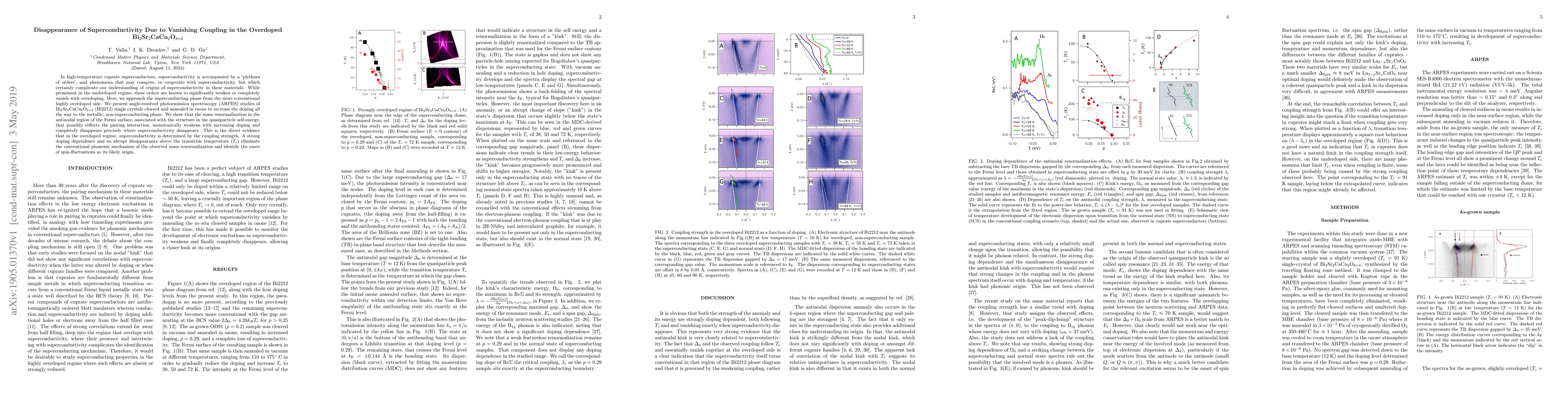 In high-temperature cuprate superconductors, superconductivity is accompanied by a "plethora of orders", and phenomena that may compete, or cooperate with superconductivity, but which certainly complicate our understanding of origins of superconductivity in these materials. While prominent in the underdoped regime, these orders are known to significantly weaken or completely vanish with overdoping. Here, we approach the superconducting phase from the more conventional highly overdoped side. We present angle-resolved photoemission spectroscopy (ARPES) studies of Bi$_2$Sr$_2$CaCu$_2$O$_{8+\delta}$ (Bi2212) single crystals cleaved and annealed in ozone to increase the doping all the way to the metallic, non-superconducting phase. We show that the mass renormalization in the antinodal region of the Fermi surface, associated with the structure in the quasiparticle self-energy, that possibly reflects the pairing interaction, monotonically weakens with increasing doping and completely disappears precisely where superconductivity disappears. This is the direct evidence that in the overdoped regime, superconductivity is determined by the coupling strength. A strong doping dependence and an abrupt disappearance above the transition temperature ($T_{\mathrm c}$) eliminate the conventional phononic mechanism of the observed mass renormalization and identify the onset of spin-fluctuations as its likely origin.