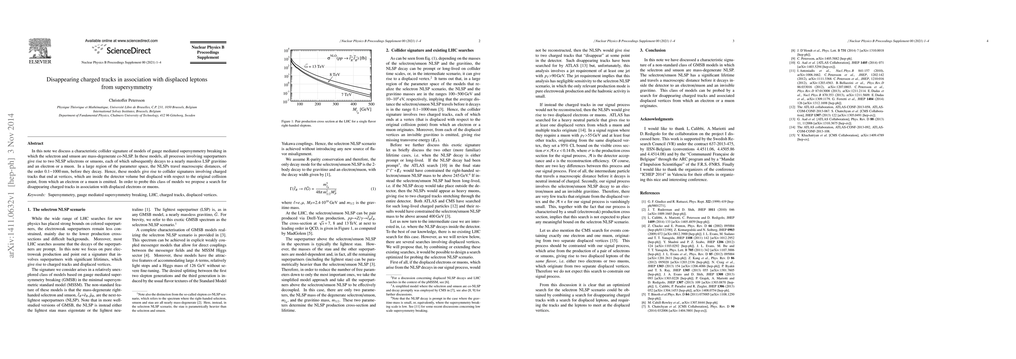 In this note we discuss a characteristic collider signature of models of gauge mediated supersymmetry breaking in which the selectron and smuon are mass-degenerate co-NLSP. In these models, all processes involving superpartners give rise to two NLSP selectrons or smuons, each of which subsequently decays to a nearly massless LSP gravitino and an electron or a muon. In a large region of the parameter space, the NLSPs travel macroscopic distances, of the order 0.1-1000 mm, before they decay. Hence, these models give rise to collider signatures involving charged tracks that end at vertices, which are inside the detector volume but displaced with respect to the original collision point, from which an electron or a muon is emitted. In order to probe this class of models we propose a search for disappearing charged tracks in association with displaced electrons or muons.