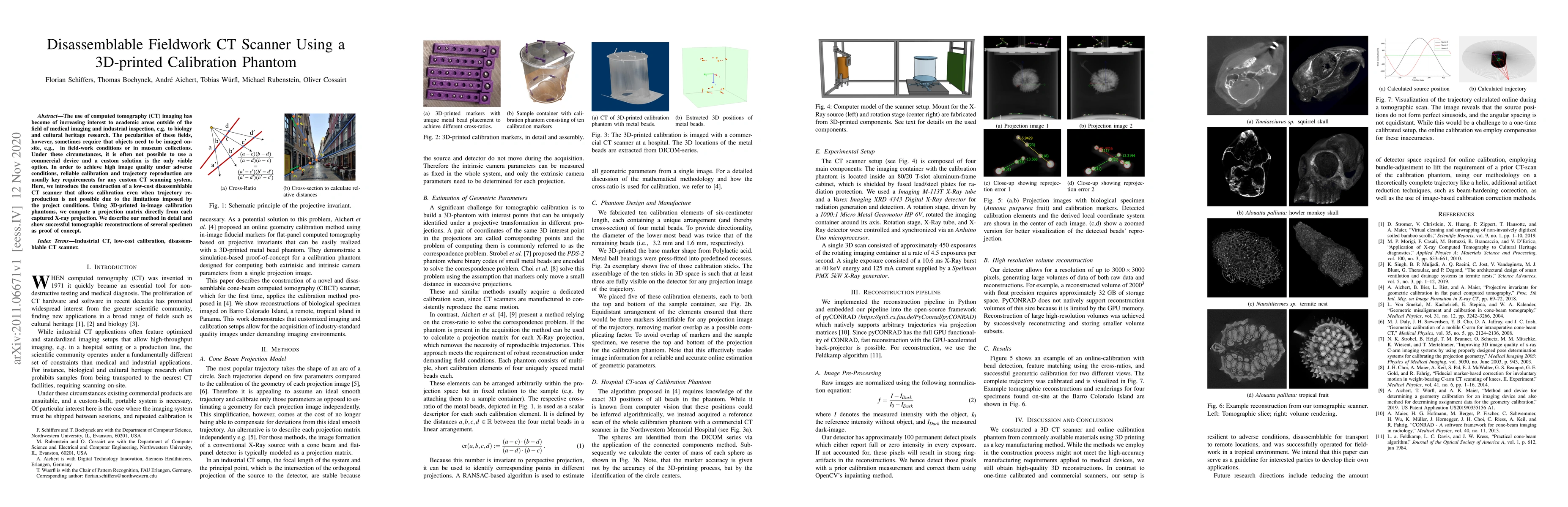 Researchers developed a low-cost disassemblable CT scanner that can produce high-quality images without needing precise trajectory reproduction, using 3D-printed calibration phantoms to compute projection matrices directly from X-ray projections.