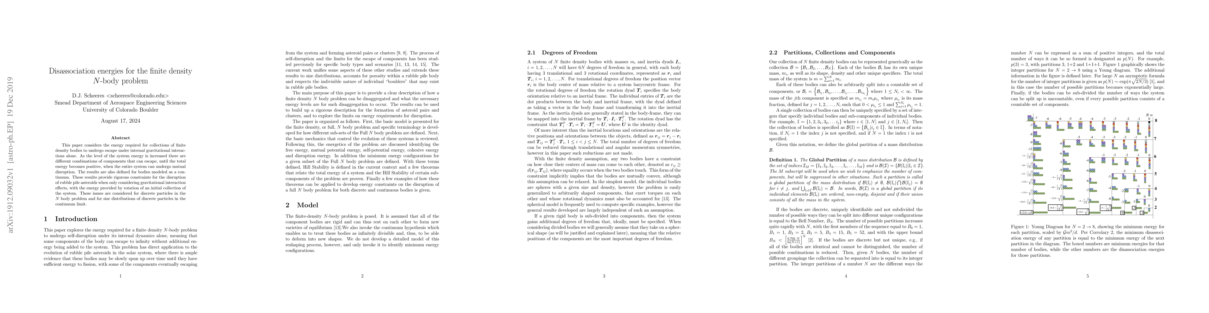 This paper calculates the energy required for a finite density N-body system to escape due to internal gravitational interactions alone. It provides constraints for disrupting rubble pile asteroids with rotational energy.