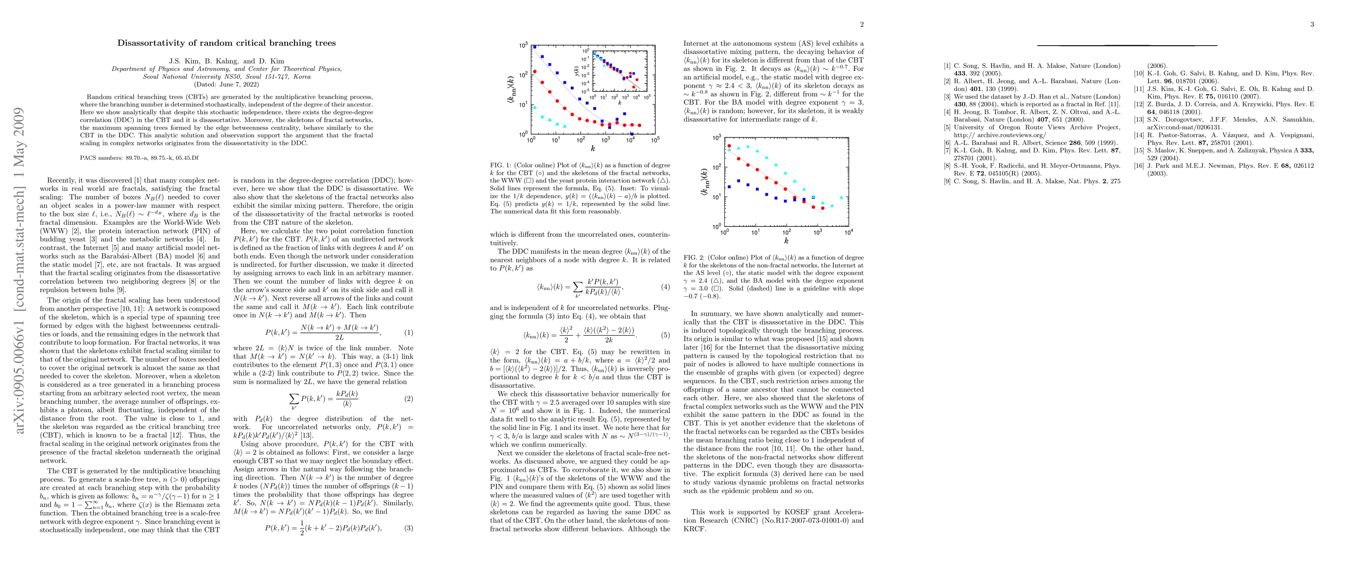 Random critical branching trees exhibit disassortative degree-degree correlation despite stochastic generation, supporting fractal scaling in complex networks as a result of this disassortativity.