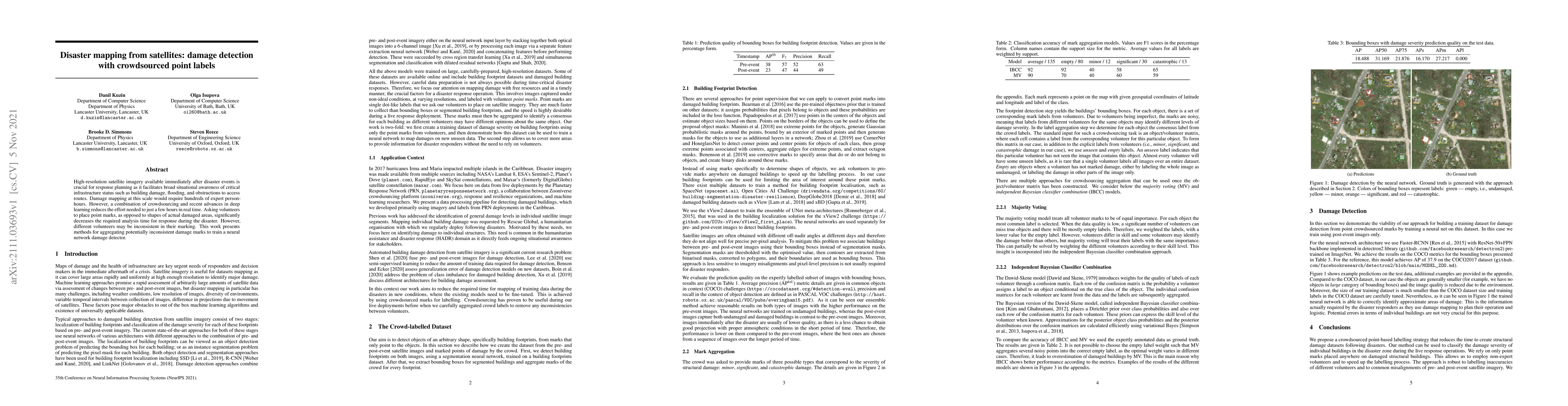 The paper presents methods for aggregating inconsistent crowdsourced damage marks and trains a neural network for damage detection, demonstrating the viability of this approach for building damage datasets.