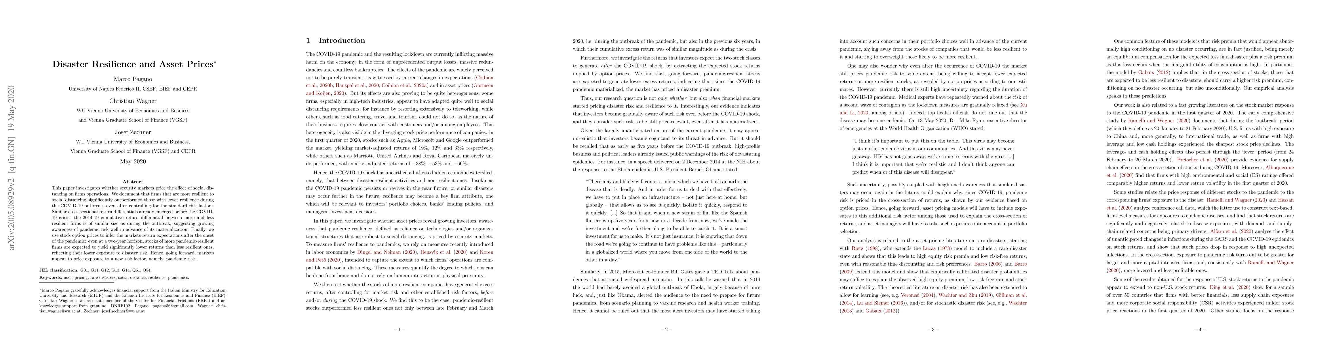 This paper investigates whether security markets price the effect of social distancing on firms' operations. We document that firms that are more resilient to social distancing significantly outperformed those with lower resilience during the COVID-19 outbreak, even after controlling for the standard risk factors. Similar cross-sectional return differentials already emerged before the COVID-19 crisis: the 2014-19 cumulative return differential between more and less resilient firms is of similar size as during the outbreak, suggesting growing awareness of pandemic risk well in advance of its materialization. Finally, we use stock option prices to infer the market's return expectations after the onset of the pandemic: even at a two-year horizon, stocks of more pandemic-resilient firms are expected to yield significantly lower returns than less resilient ones, reflecting their lower exposure to disaster risk. Hence, going forward, markets appear to price exposure to a new risk factor, namely, pandemic risk.