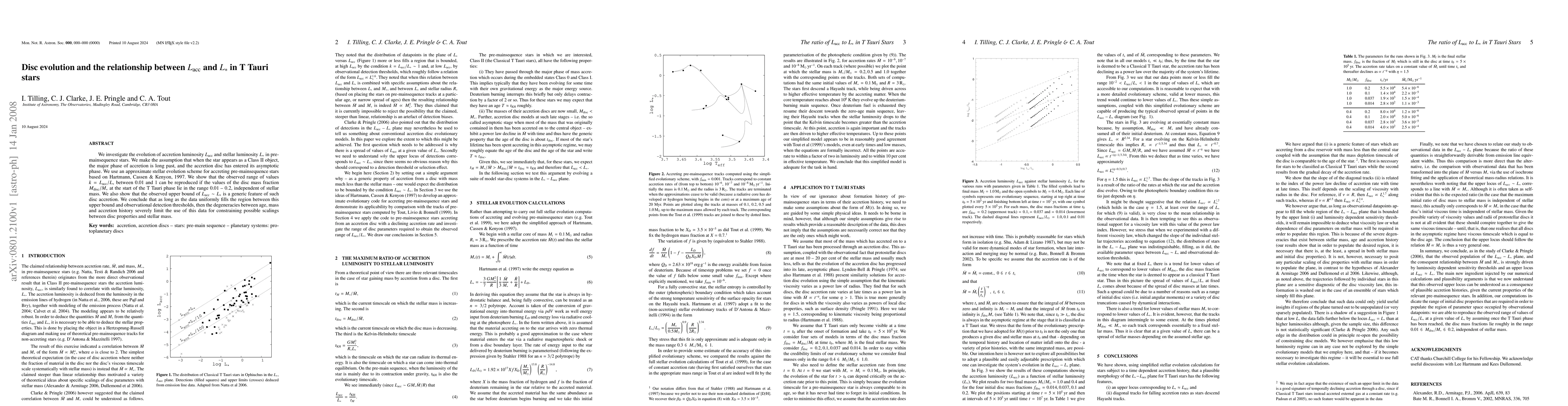 We investigate the evolution of accretion luminosity $L_{\rm acc}$ and stellar luminosity ${L_\ast}$ in pre-mainsequence stars. We make the assumption that when the star appears as a Class II object, the major phase of accretion is long past, and the accretion disc has entered its asymptotic phase. We use an approximate stellar evolution scheme for accreting pre-mainsequence stars based on Hartmann, Cassen & Kenyon, 1997. We show that the observed range of values $k = L_{\rm acc}/L_\ast$ between 0.01 and 1 can be reproduced if the values of the disc mass fraction $M_{\rm disc}/M_*$ at the start of the T Tauri phase lie in the range 0.01 -- 0.2, independent of stellar mass. We also show that the observed upper bound of $L_{\rm acc} \sim L_\ast$ is a generic feature of such disc accretion. We conclude that as long as the data uniformly fills the region between this upper bound and observational detection thresholds, then the degeneracies between age, mass and accretion history severely limit the use of this data for constraining possible scalings between disc properties and stellar mass.